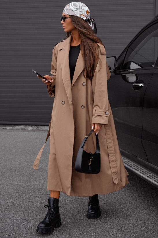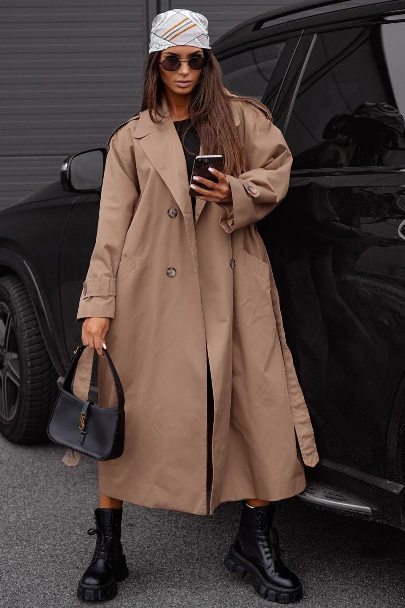 Αναβαθμίστε το στυλ σας με αυτή τη μακριά καμπαρντίνα. Διαθέτει κλασικό γιακά με πέτο, διπλή σειρά κουμπιών και πρακτικές πλαϊνές τσέπες. Η αφαιρούμενη ζώνη στη μέση τονίζει τη σιλουέτα, ενώ οι λεπτομέρειες στα μανίκια προσθέτουν μια επιπλέον πινελιά στυλ. Ένα διαχρονικό κομμάτι που συνδυάζει κλασικό σχέδιο με μοντέρνα αισθητική, είναι ιδανικό για να ολοκληρώσει κάθε σας εμφάνιση, από το πρωί μέχρι το βράδυ.
