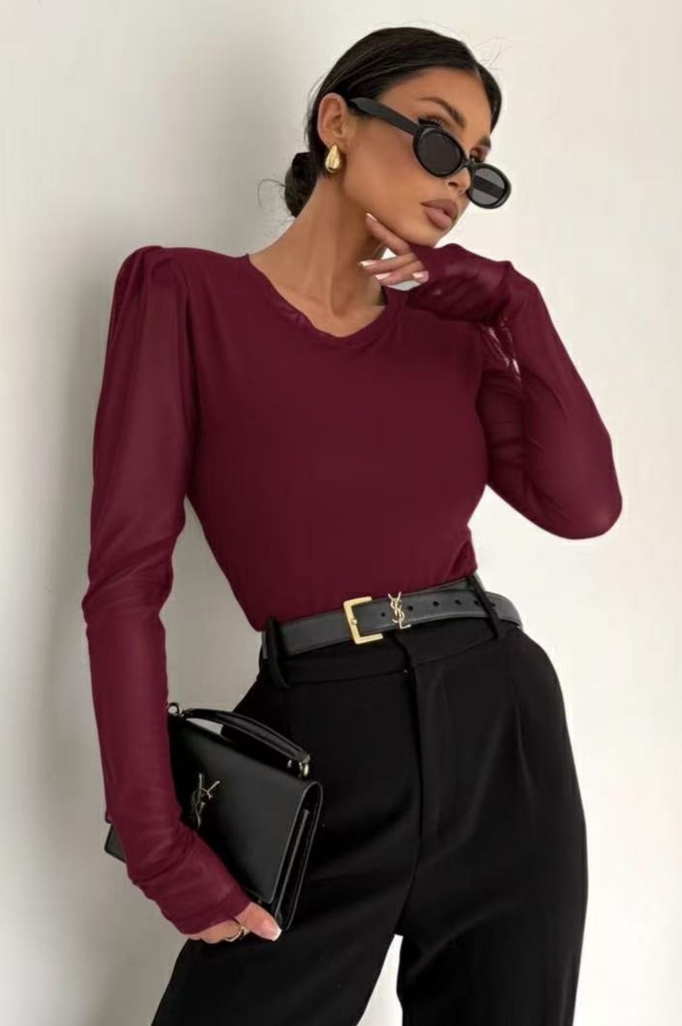 Αναδείξτε έναν αέρα κομψότητας και αισθησιασμού στη γκαρνταρόμπα σας με αυτό το μακρυμάνικο κορμάκι. Το bodysuit είναι το ιδανικό top για σταθερή εφαρμογή και άψογη εμφάνιση κάτω από παντελόνια ή φούστες. Το κύριο μέρος του κορμακίου είναι κατασκευασμένο από ελαστικό ύφασμα, ενώ τα μανίκια είναι από διάφανο τούλι με ελαφρώς τονισμένους ώμους, προσδίδοντας ένα μοντέρνο και θηλυκό στοιχείο. Αυτό το κομμάτι είναι ιδανικό για να δημιουργήσετε chic casual ή ημι-επίσημα σύνολα. Μπορεί να φορεθεί με ψηλόμεσα παντελόνια για μια statement εμφάνιση γραφείου ή με δερματίνη για βραδινή έξοδο. Αποτελεί το απαραίτητο γυναικείο τοπ για κάθε εποχή.