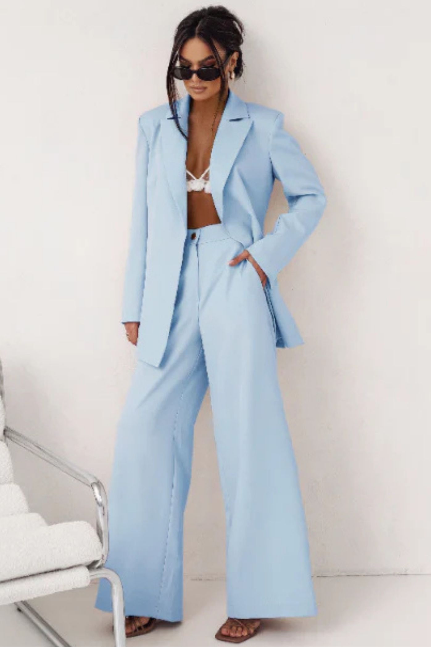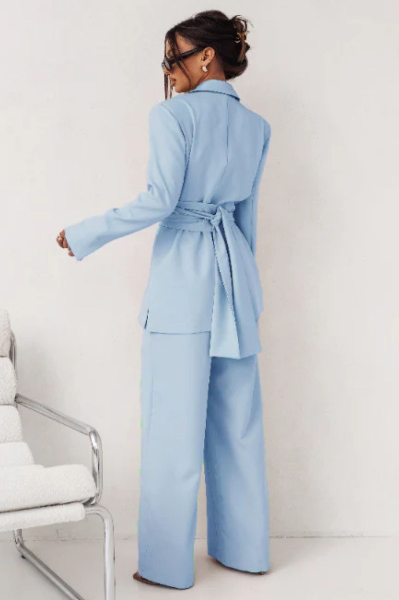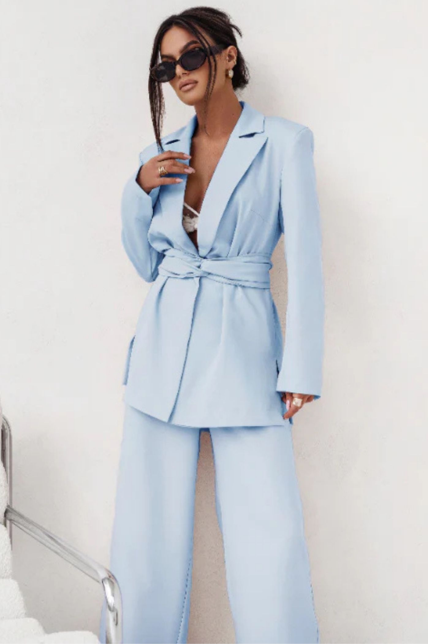 ΚΟΣΤΟΥΜΙ ΣΑΚΑΚΙ BLAZER ΜΕ ΖΩΝΗ ΚΑΙ ΠΑΝΤΕΛΟΝΙ – ΓΑΛΑΖΙΟ