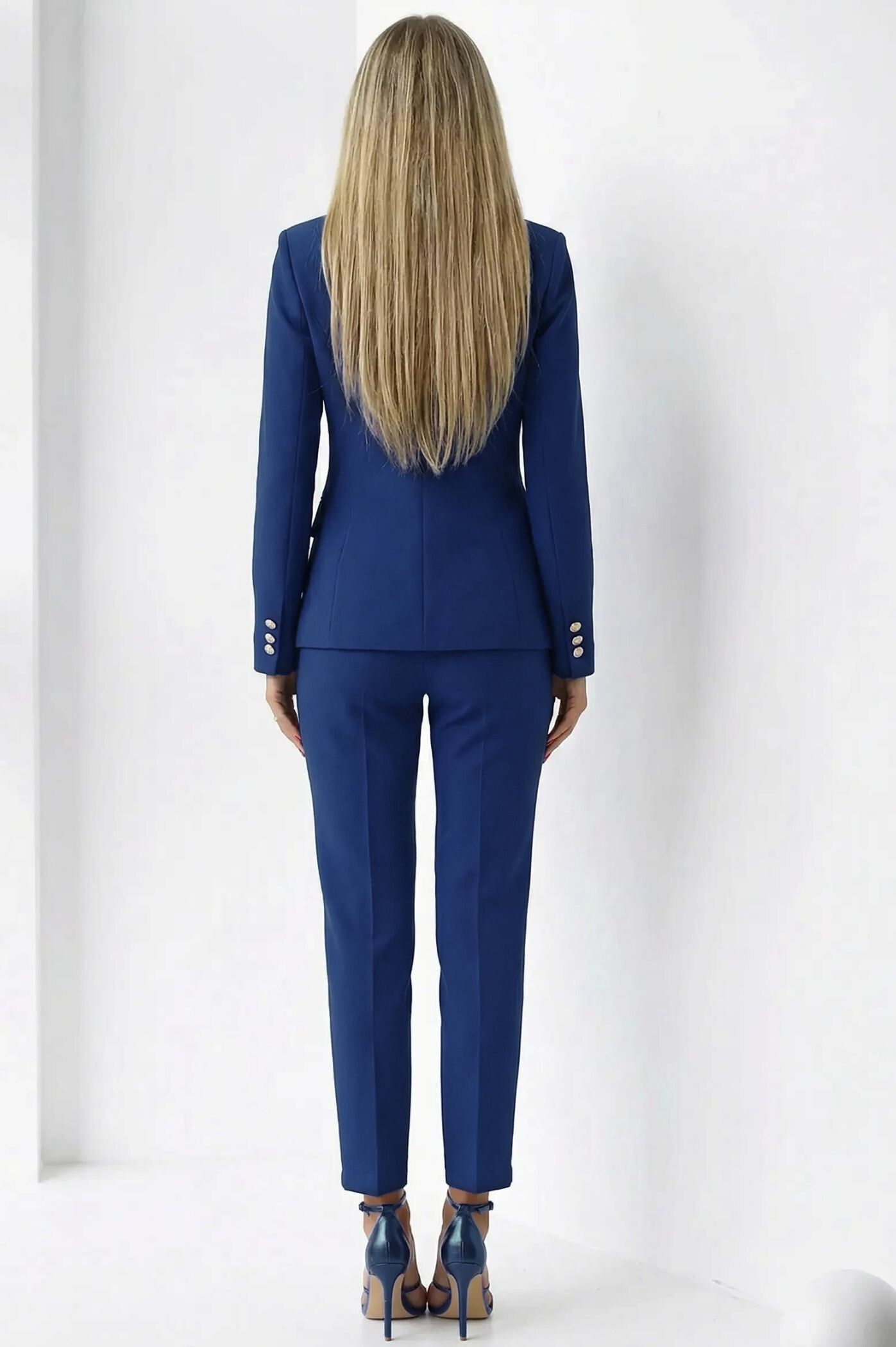 Αναδείξτε το επαγγελματικό και επίσημο στυλ σας με αυτό το μοντέρνο γυναικείο κοστούμι σετ. Σχεδιασμένο για τη σύγχρονη γυναίκα που θέλει να ξεχωρίζει με δυναμισμό και θηλυκότητα, αυτό το σύνολο αποτελεί την ιδανική επιλογή για office looks, επαγγελματικά ραντεβού, γάμους ή βαπτίσεις. Το σακάκι διαθέτει στενή, μεσάτη γραμμή που αναδεικνύει τη σιλουέτα, με εντυπωσιακά χρυσά κουμπιά που προσθέτουν μια luxury αίσθηση. Το παντελόνι σε ίσια γραμμή με τσάκιση προσφέρει ύψος και κομψότητα, εξασφαλίζοντας τέλεια εφαρμογή. Κατασκευασμένο από υλικά που αγκαλιάζουν το σώμα χωρίς να περιορίζουν την κίνηση, διατηρώντας τη φόρμα του όλη μέρα.