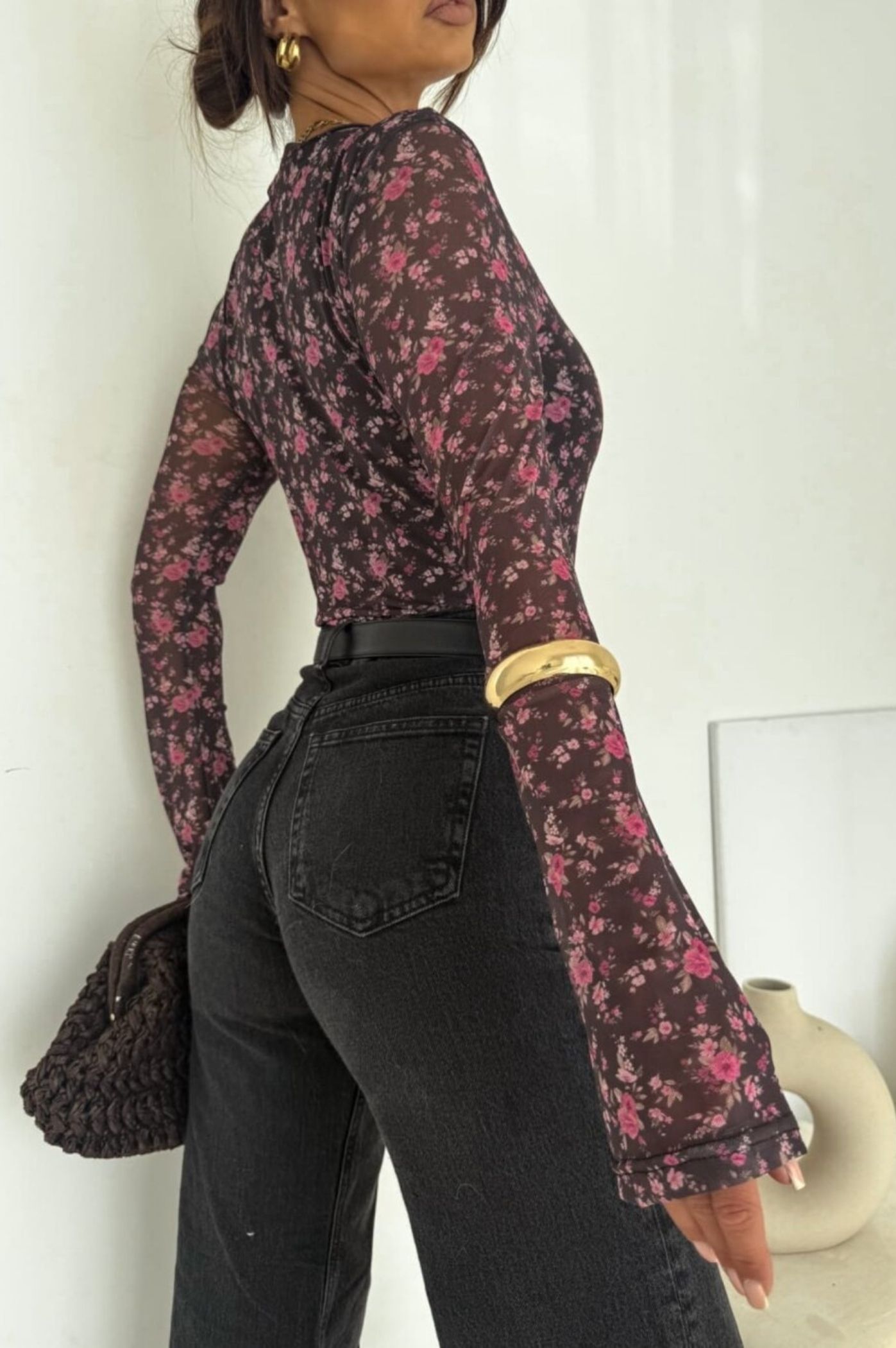 Αναδείξτε την απόλυτη boho-chic αισθητική με αυτή τη μοντέρνα μπλούζα από διαφάνεια. Αυτό το γυναικείο τοπ από ελαστική διαφάνεια mesh κι ένα διακριτικό φλοράλ σχέδιο, προσδίδει ένα ρομαντικό, vintage ύφος. Διαθέτει στρογγυλή λαιμόκοψη και μακριά μανίκια που ανοίγουν ελαφρώς σε γραμμή καμπάνα στους καρπούς, προσθέτοντας κίνηση και στυλ. Η εφαρμοστή της γραμμή την καθιστά ιδανική για να φορεθεί με ψηλόμεσο τζιν , δερμάτινες φούστες ή παντελόνια για ένα εναλλακτικό casual ή βραδινό look. Είναι το ιδανικό layering piece για να προσθέσετε υφή και μοτίβο.