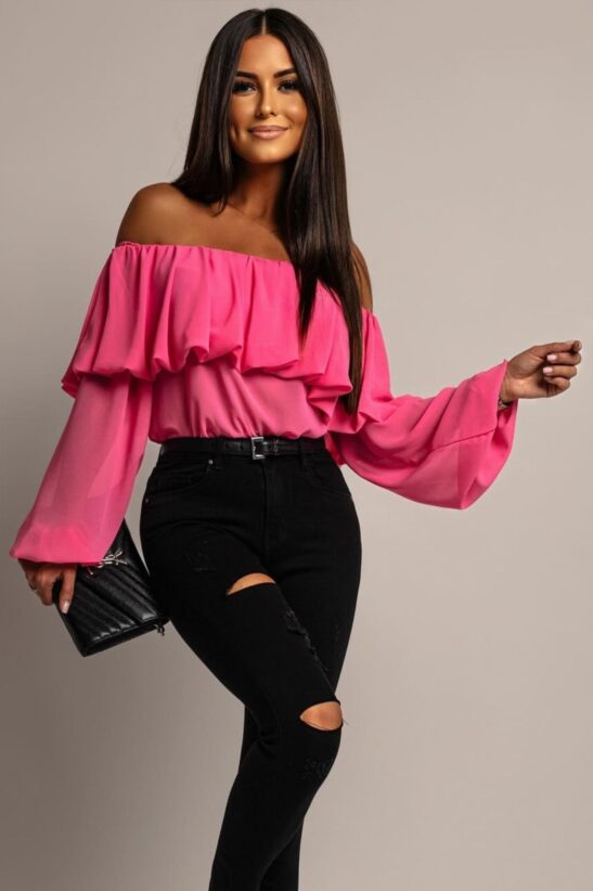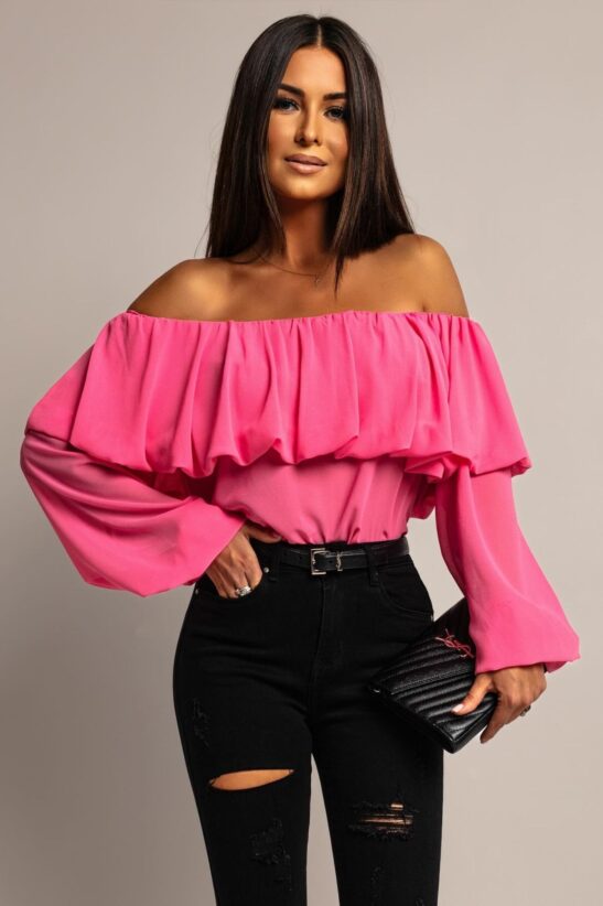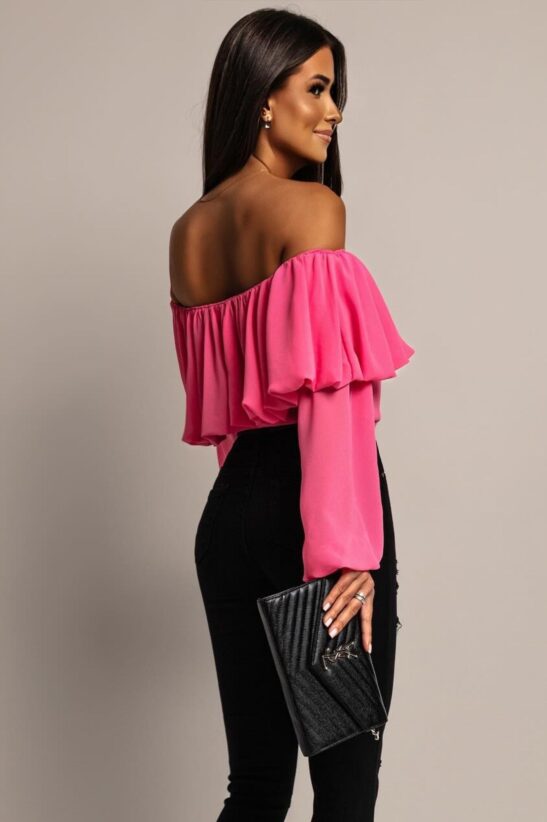 ΜΠΛΟΥΖΑ OFF SHOULDER ΜΕ ΒΟΛΑΝ – ΦΟΥΞΙΑ