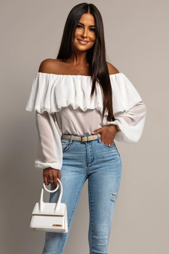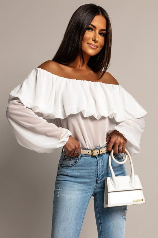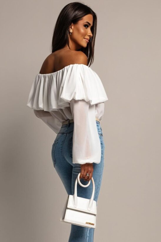 ΜΠΛΟΥΖΑ OFF SHOULDER ΜΕ ΒΟΛΑΝ – ΛΕΥΚΟ
