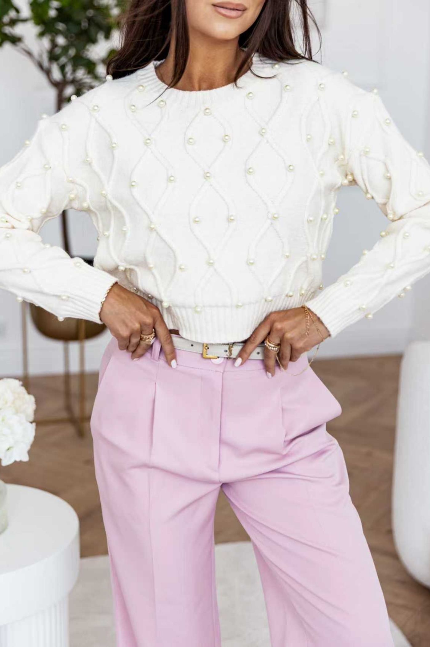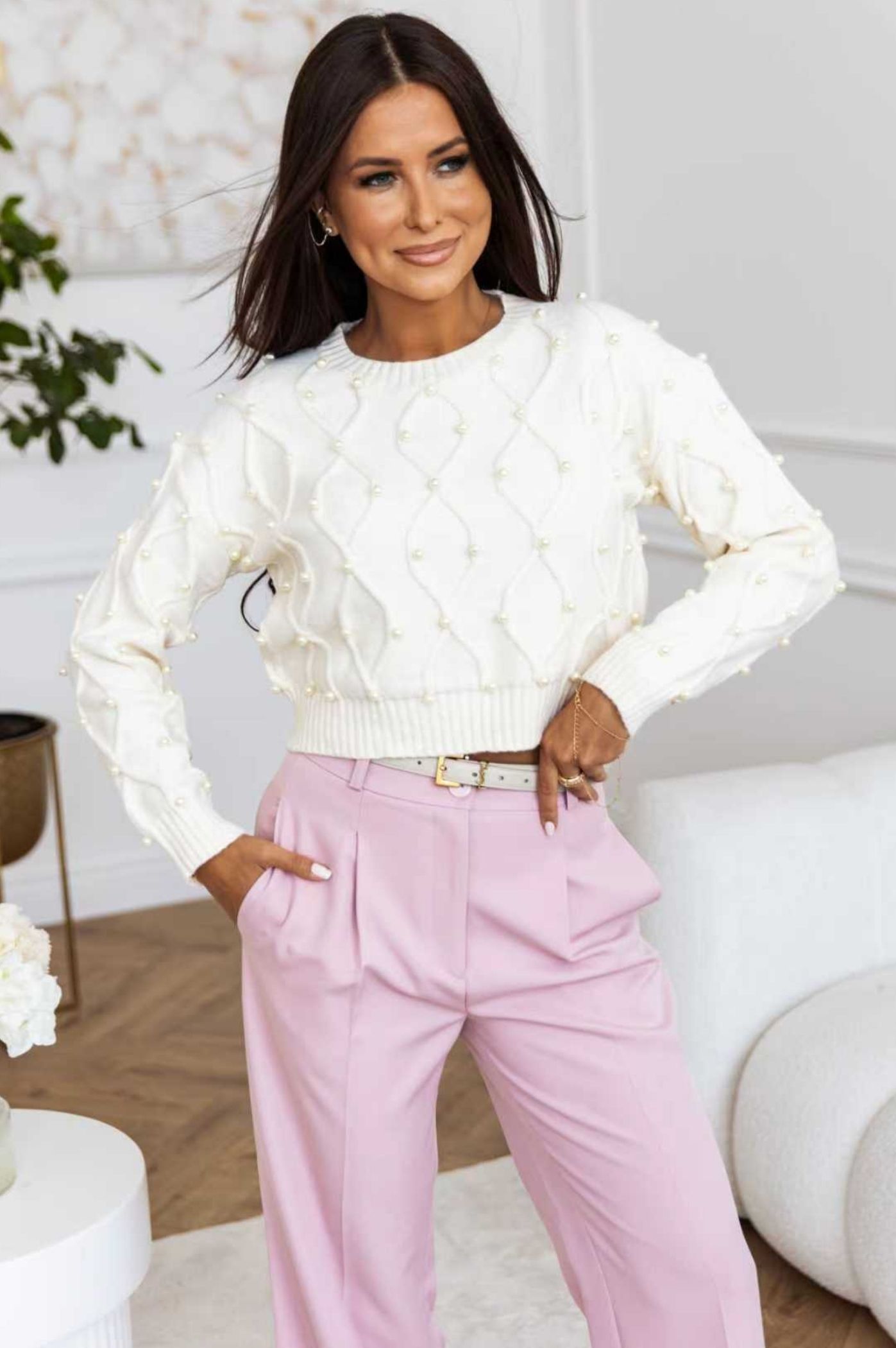 Αναδείξτε τη χειμερινή σας γκαρνταρόμπα με αυτό το κομψό cropped πλεκτό πουλόβερ, ιδανικό για μοντέρνα και θηλυκά σύνολα. Το πουλόβερ ξεχωρίζει χάρη στο ανάγλυφο πλεκτό μοτίβο σε σχήμα διαμαντιού, το οποίο είναι διακοσμημένο με μικρά μαργαριτάρια σε όλη την επιφάνεια. Η κοντή γραμμή του είναι ιδανική για να φορεθεί με ψηλόμεσα παντελόνια ή φούστες. Τα μαργαριτάρια προσδίδουν μια ρομαντική και αριστοκρατική πινελιά, μετατρέποντας ένα απλό χειμωνιάτικο πλεκτό σε statement piece. Είναι η τέλεια επιλογή για casual chic εμφανίσεις, για το γραφείο ή για ένα καφέ με φίλες. Αναζητάτε ένα γυναικείο πουλόβερ που συνδυάζει την ζεστασιά με τη διαχρονική κομψότητα; Μόλις το βρήκατε!
