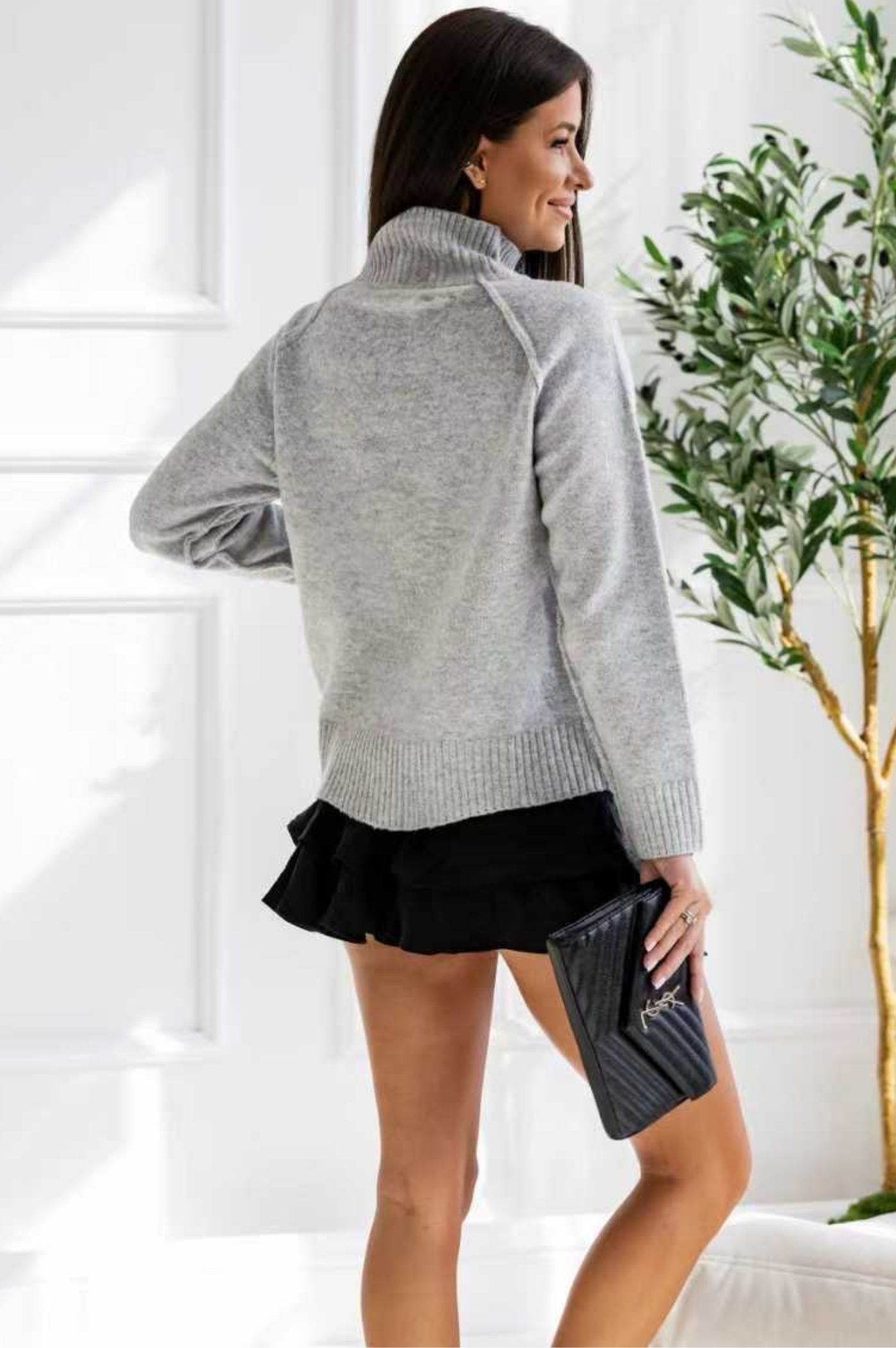 Αναδείξτε το στυλ σας με αυτό το ζεστό και κομψό γυναικείο πουλόβερ. Αυτή η πλεκτή μπλούζα διαθέτει άνετη γραμμή και μαλακή υφή, ιδανική για τις κρύες ημέρες του χρόνου. Το ιδιαίτερο χαρακτηριστικό της είναι ο όρθιος γιακάς που διακοσμείται με εντυπωσιακά χρυσά κουμπιά, προσδίδοντας έναν αέρα πολυτέλειας και preppy στυλ. Η εφαρμογή είναι ελαφρώς oversized, καθιστώντας την ιδανική για να φορεθεί πάνω από άλλα ρούχα ή μόνη της. Μπορεί να φορεθεί με μίνι φούστες ή με τζιν και μπότες για ένα ολοκληρωμένο, casual chic σύνολο. Το τέλειο χειμερινό πλεκτό για κομψές και ζεστές εμφανίσεις.