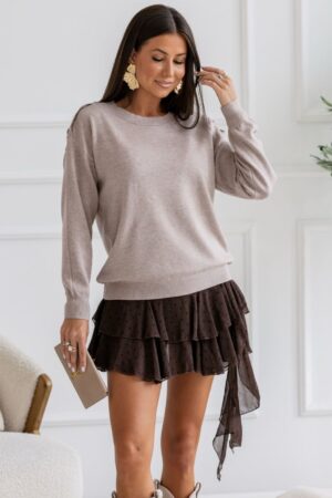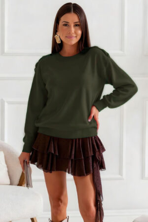 Αναδείξτε το στυλ σας με την απόλυτη casual chic πλεκτή μπλούζα που θα φορέσετε από το πρωί έως το βράδυ. Αυτό το γυναικείο πουλόβερ είναι το κομμάτι-κλειδί που ταιριάζει με τα πάντα. Διαθέτει χαλαρή (relaxed) γραμμή και στρογγυλή λαιμόκοψη. Η διακριτική αλλά εντυπωσιακή λεπτομέρεια είναι τα διακοσμητικά κουμπιά στους ώμους, που της δίνουν έναν πιο ιδιαίτερο και μοντέρνο τόνο. Κατασκευασμένη από απαλή, ποιοτική πλέξη, προσφέρει άνεση και ζεστασιά. Φορέστε τη με μίνι φούστες ή με το αγαπημένο σας τζιν παντελόνι για ένα ευέλικτο καθημερινό στυλ.