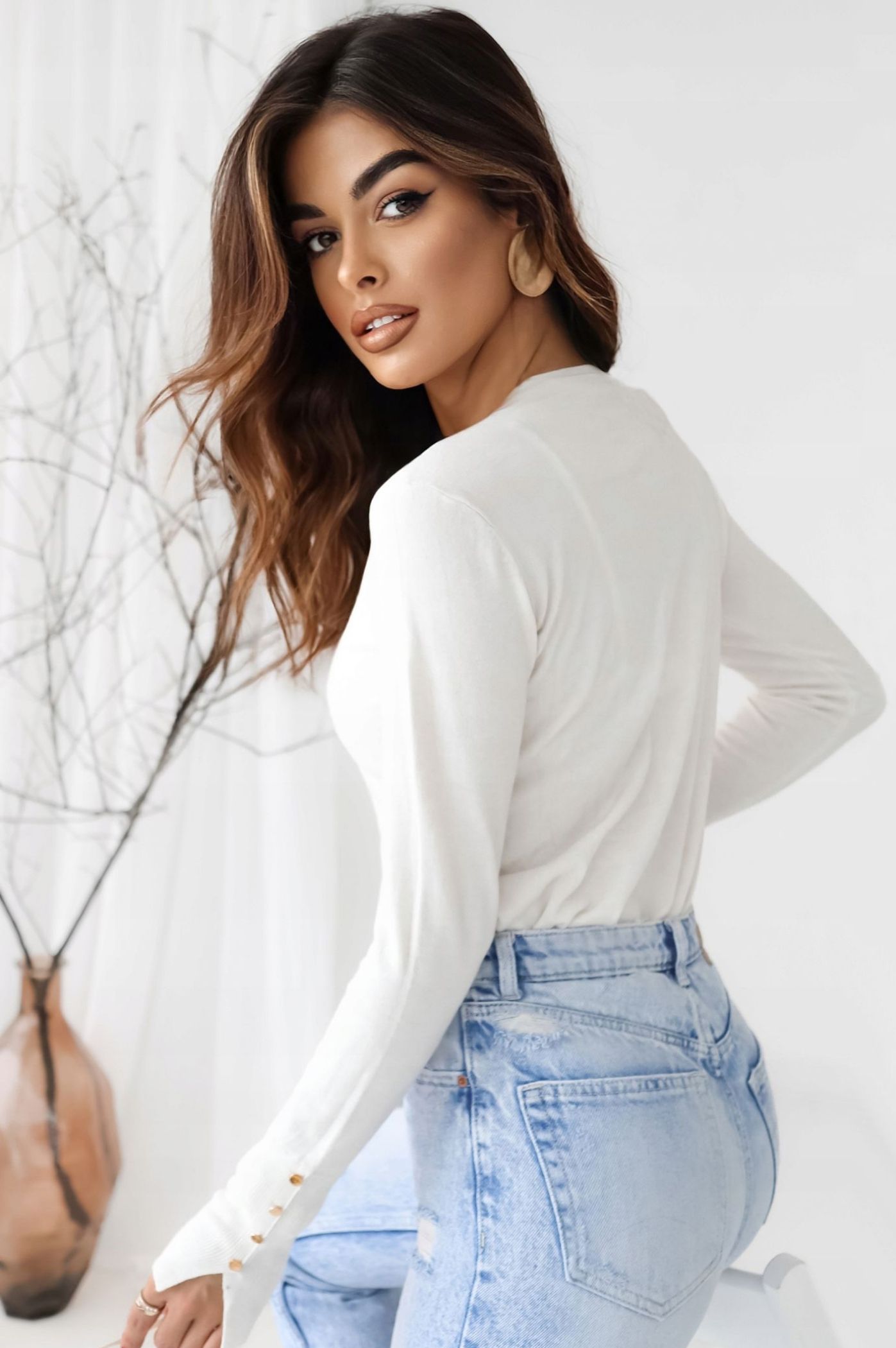 Αναδείξτε την απόλυτη άνεση και το διαχρονικό στυλ με αυτή τη γυναικεία πλεκτή μπλούζα. Η λεπτή πλέξη και η ίσια γραμμή την καθιστούν ιδανική για layering ή για να φορεθεί μόνη της, ενώ η στρογγυλή λαιμόκοψη προσδίδει κλασική κομψότητα. Το ιδιαίτερο χαρακτηριστικό της είναι η μοντέρνα λεπτομέρεια στα μακριά μανίκια, διαθέτει διακοσμητικά κουμπιά στο τελείωμα, δημιουργώντας ένα εφέ cut-out ή άνοιγμα για τον αντίχειρα. Αυτή η πινελιά δίνει έναν μοντέρνο και σπορ-chic αέρα στο basic πλεκτό. Ιδανική για casual chic εμφανίσεις, μπορεί να φορεθεί με δερμάτινα παντελόνια, τζιν ή φούστες. Ένα ευέλικτο basic κομμάτι για το φθινόπωρο και τον χειμώνα.
