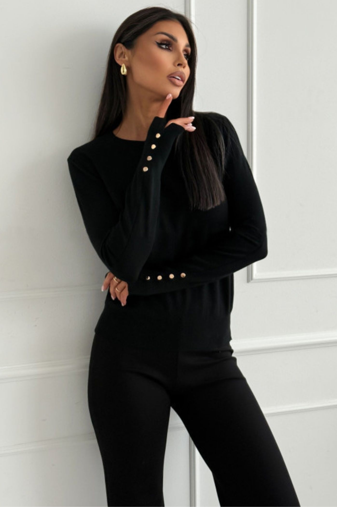 MΠΛΟΥΖΑ ΠΛΕΚΤΗ ΜΕ ΔΙΑΚΟΣΜΗΤΙΚΑ ΚΟΥΜΠΙΑ ΣΤΑ ΜΑΝΙΚΙΑ – ΜΑΥΡΟ
