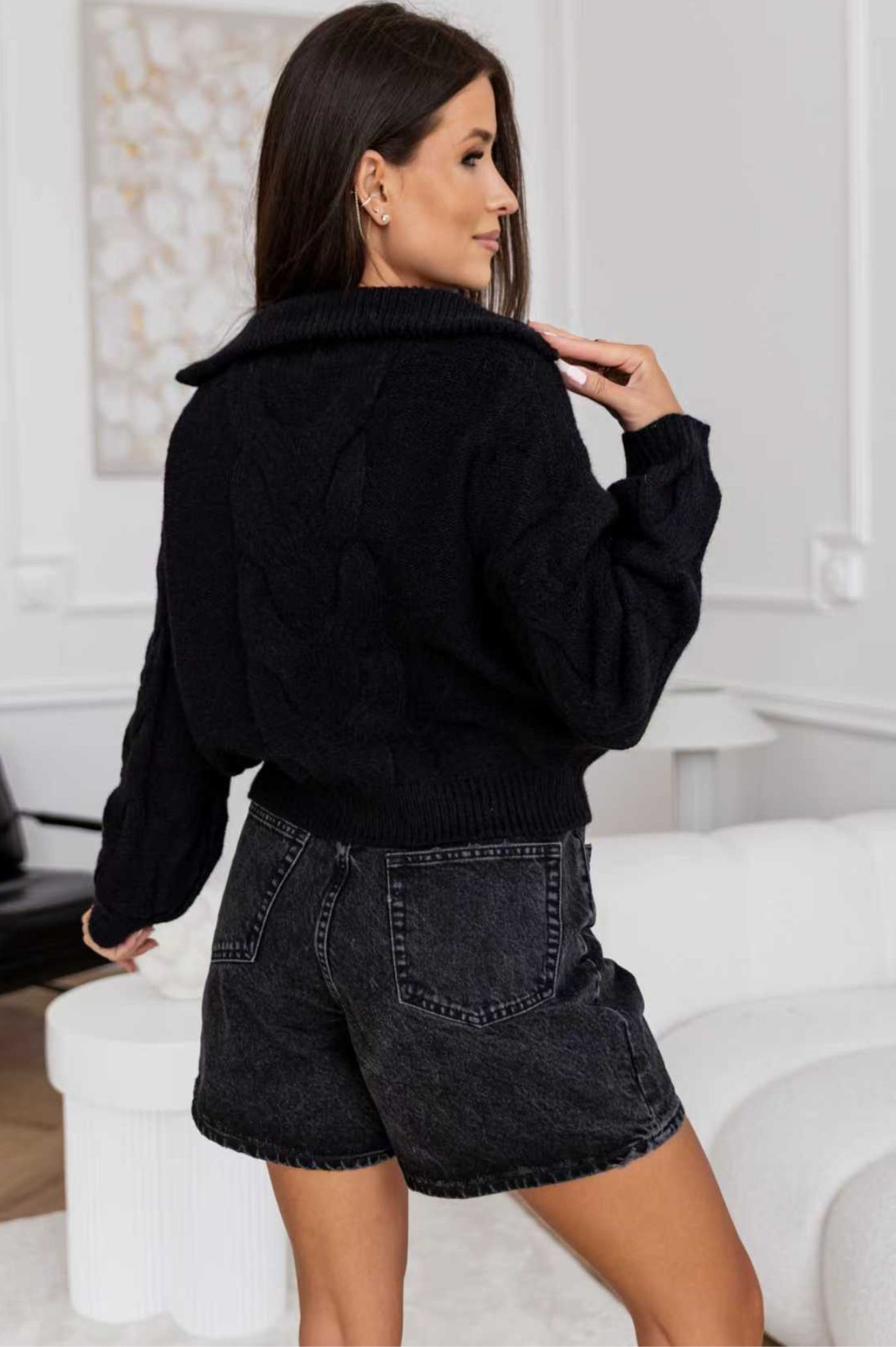 Αποκτήστε το πιο μοντέρνο και ζεστό κομμάτι της σεζόν! Αυτή η γυναικεία πλεκτή μπλούζα συνδυάζει την άνεση με το στυλ. Διαθέτει χαλαρή γραμμή και εντυπωσιακό σχέδιο πλέξης στο μπροστινό μέρος και στα μανίκια. Το ιδιαίτερο χαρακτηριστικό της είναι ο ψηλός γιακάς με φερμουάρ, που σας επιτρέπει να ρυθμίζετε το ντεκολτέ ανάλογα με τη διάθεσή σας είτε κλειστό ως ζιβάγκο, είτε ανοιχτό ως πόλο. Η cropped εφαρμογή την καθιστά ιδανική για συνδυασμό με ψηλόμεσες φούστες ή τζιν παντελόνια. Ιδανική για casual και athleisure εμφανίσεις, αυτό το γκρι πουλόβερ είναι το απόλυτο go-to για τον χειμώνα και το φθινόπωρο.