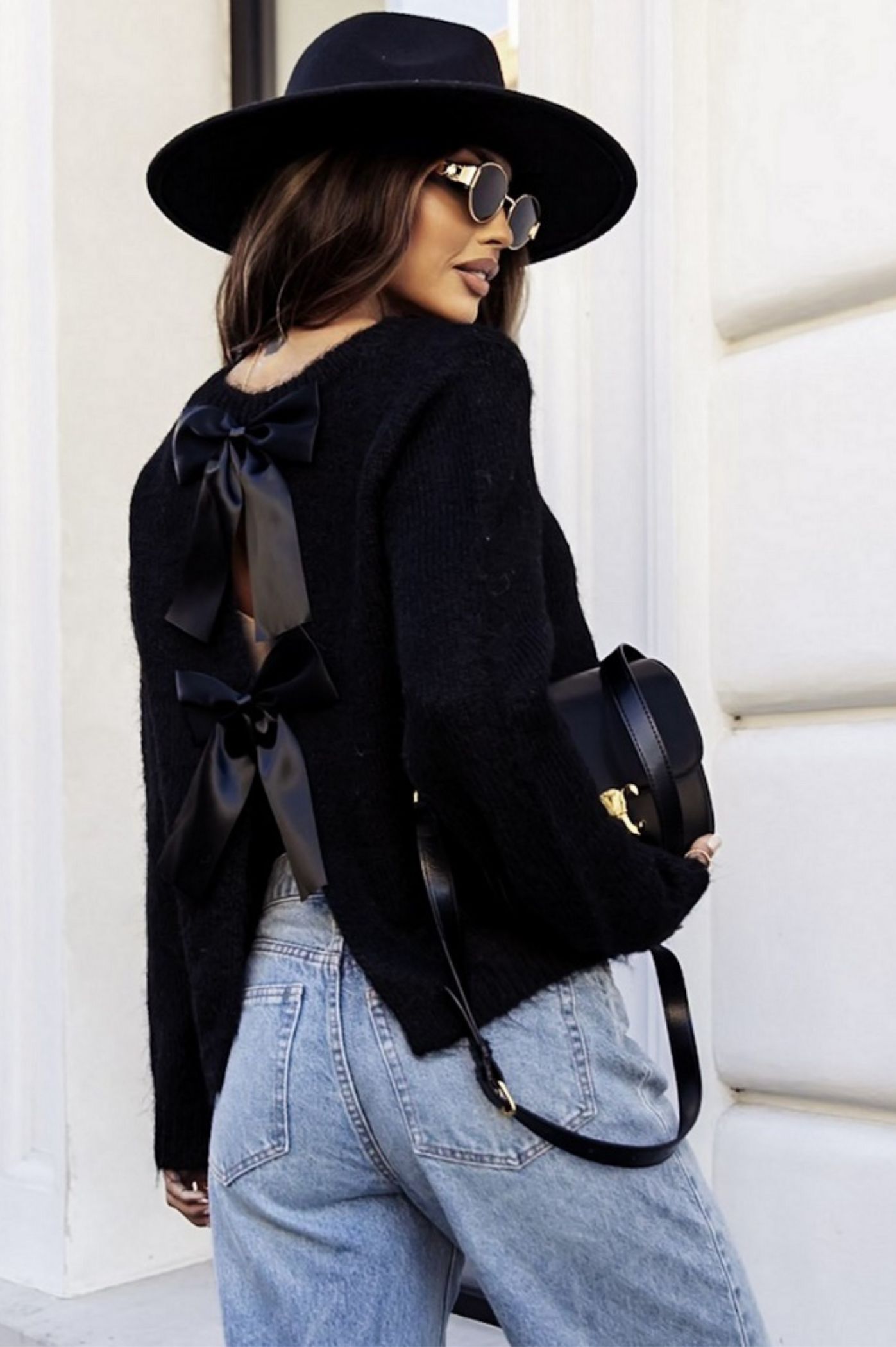 Αναδείξτε την απόλυτη ισορροπία μεταξύ άνεσης και κομψότητας με αυτή τη μοναδική γυναικεία πλεκτή μπλούζα. Η μπλούζα έχει χαλαρή γραμμή και μαλακή, ζεστή υφή, ιδανική για τις casual chic εμφανίσεις του χειμώνα. Ενώ μπροστά είναι ένα κλασικό πουλόβερ με στρογγυλή λαιμόκοψη, πίσω κρύβει ένα εκπληκτικό statement σχέδιο, εντυπωσιακά ανοίγματα που διακοσμούνται με δύο μεγάλους μαύρους φιόγκους. Αυτό το στοιχείο μετατρέπει την πλεκτή μπλούζα σε βραδινό ή fashion κομμάτι, προσδίδοντας έναν αέρα ρομαντισμού και θάρρους. Μπορεί να φορεθεί με ψηλόμεσα τζιν ή δερμάτινα παντελόνια.
