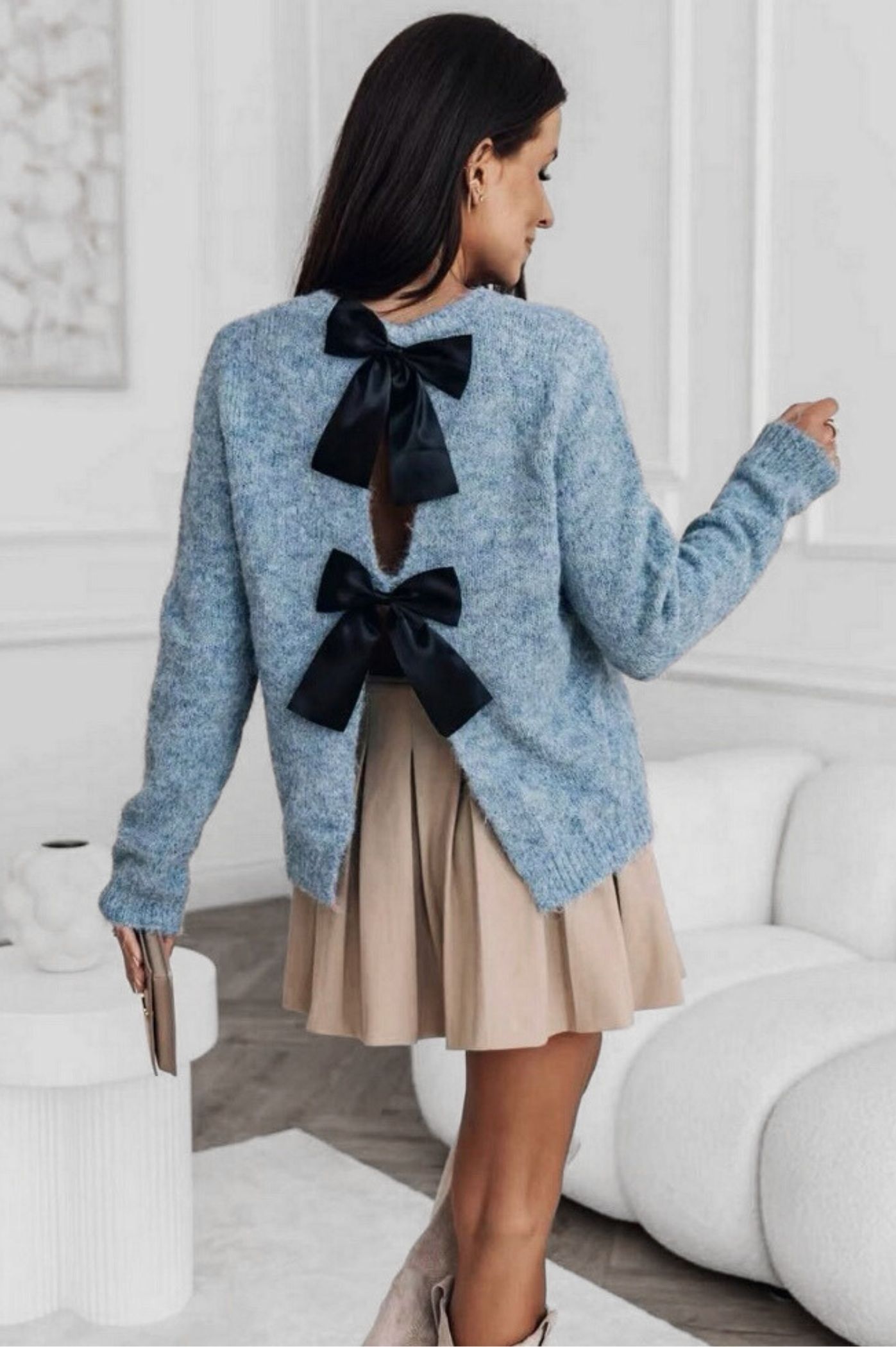 Αναδείξτε την απόλυτη ισορροπία μεταξύ άνεσης και κομψότητας με αυτή τη μοναδική γυναικεία πλεκτή μπλούζα. Η μπλούζα έχει χαλαρή γραμμή και μαλακή, ζεστή υφή, ιδανική για τις casual chic εμφανίσεις του χειμώνα. Ενώ μπροστά είναι ένα κλασικό πουλόβερ με στρογγυλή λαιμόκοψη, πίσω κρύβει ένα εκπληκτικό statement σχέδιο, εντυπωσιακά ανοίγματα που διακοσμούνται με δύο μεγάλους μαύρους φιόγκους. Αυτό το στοιχείο μετατρέπει την πλεκτή μπλούζα σε βραδινό ή fashion κομμάτι, προσδίδοντας έναν αέρα ρομαντισμού και θάρρους. Μπορεί να φορεθεί με ψηλόμεσα τζιν ή δερμάτινα παντελόνια.