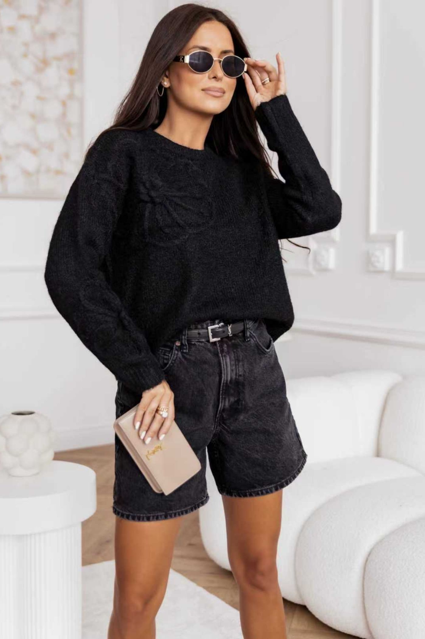 Προσθέστε μια ρομαντική και παιχνιδιάρικη πινελιά στην γκαρνταρόμπα σας με αυτό το εντυπωσιακό πλεκτό πουλόβερ. Το ρούχο ξεχωρίζει για το μοναδικό σχέδιο λουλουδιού, που του δίνει όγκο, υφή και έναν ξεχωριστό χαρακτήρα. Η πλέξη είναι μαλακή και αφράτη, προσφέροντας άνεση και ζεστασιά, ενώ η χαλαρή γραμμή το καθιστά ιδανικό για layering. Η στρογγυλή λαιμόκοψη και η απλότητα του υπόλοιπου σχεδίου αναδεικνύουν το λουλούδι ως το κεντρικό στοιχείο. Μπορεί να φορεθεί με τζιν ή δερμάτινα παντελόνια για ένα chic casual look.