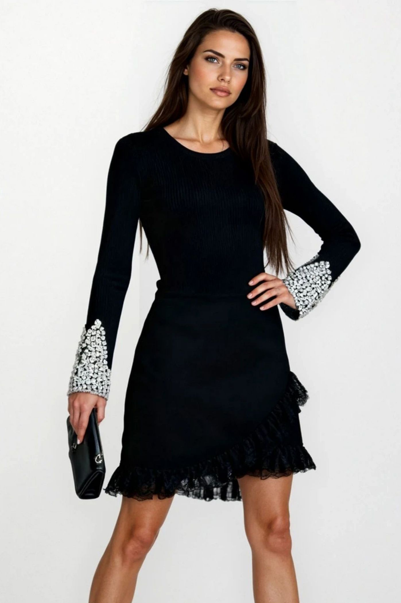 Αναζητάτε το ιδανικό πλεκτό που θα σας συνοδεύσει από το γραφείο στο βραδινό ποτό; Αυτή η μπλούζα είναι η απάντηση! Με ριπ πλέξη και ζεστή, εφαρμοστή γραμμή, προσφέρει την άνεση που χρειάζεστε με την πολυτέλεια που επιθυμείτε. Το signature στοιχείο της μπλούζας είναι οι εντυπωσιακές μανσέτες. Τα άκρα των μακριών μανικιών είναι πλούσια διακοσμημένα με αστραφτερά strass, δημιουργώντας ένα εφέ "κοσμήματος". Αυτό το glam detail μετατρέπει άμεσα την μπλούζα από ένα απλό πλεκτό σε ένα statement top για party.