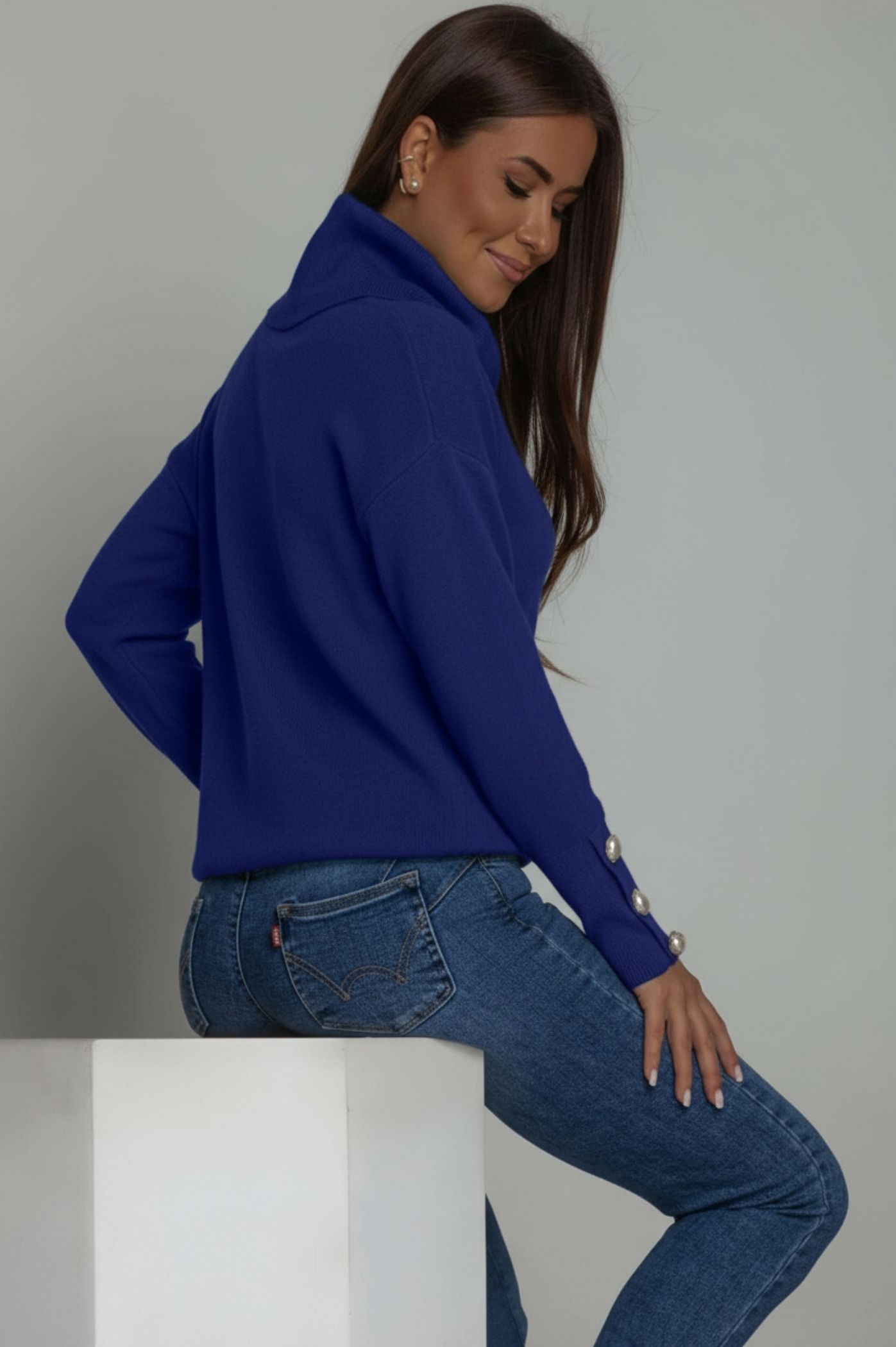 Αποκτήστε το ιδανικό πλεκτό ζιβάγκο για τον χειμώνα! Αυτή η γυναικεία πλεκτή μπλούζα συνδυάζει την άνεση με την κομψότητα. Διαθέτει χαλαρή γραμμή και πλούσιο ζιβάγκο λαιμό, προσφέροντας μέγιστη ζεστασιά και στυλ. Το σχέδιο είναι minimal, αλλά ξεχωρίζει χάρη στην εντυπωσιακή λεπτομέρεια με διακριτικά κουμπιά στο τελείωμα των μακριών μανικιών, προσδίδοντας ένα glam και ιδιαίτερο τόνο. Η χαλαρή εφαρμογή την καθιστά ιδανική για layering και για συνδυασμούς με ψηλόμεσες φούστες. Ιδανική για casual chic εμφανίσεις, για τον καφέ ή για μια βόλτα, είναι το must-have γκρι πουλόβερ για την φθινοπωρινή-χειμερινή γκαρνταρόμπα.