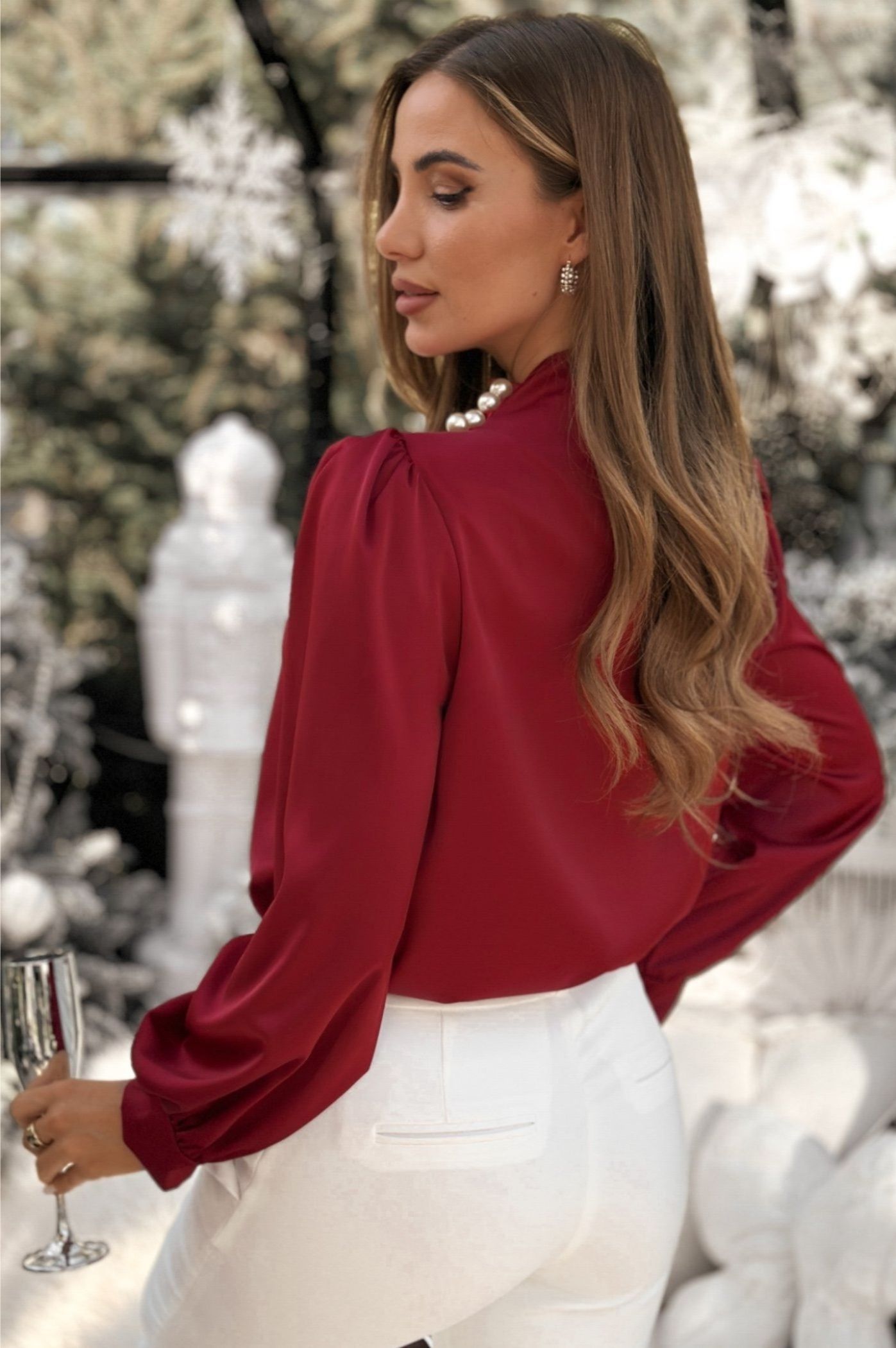 Αναδείξτε το κομψό σας στυλ με αυτήν την εκθαμβωτική σατέν μπλούζα. Κομψή και αριστοκρατική, αυτή η σατέν μπλούζα είναι η ιδανική επιλογή για επίσημες εμφανίσεις. Το ύφασμα σατέν χαρίζει ρευστότητα και λάμψη, ενώ το χαμηλό ζιβάγκο προσδίδει φινέτσα. Διαθέτει διακοσμητικές πέρλες στους ώμους που λειτουργούν ως statement κόσμημα. Συνδυάστε τη με λευκά ή μαύρα παντελόνια για ένα luxury και γιορτινό αποτέλεσμα.