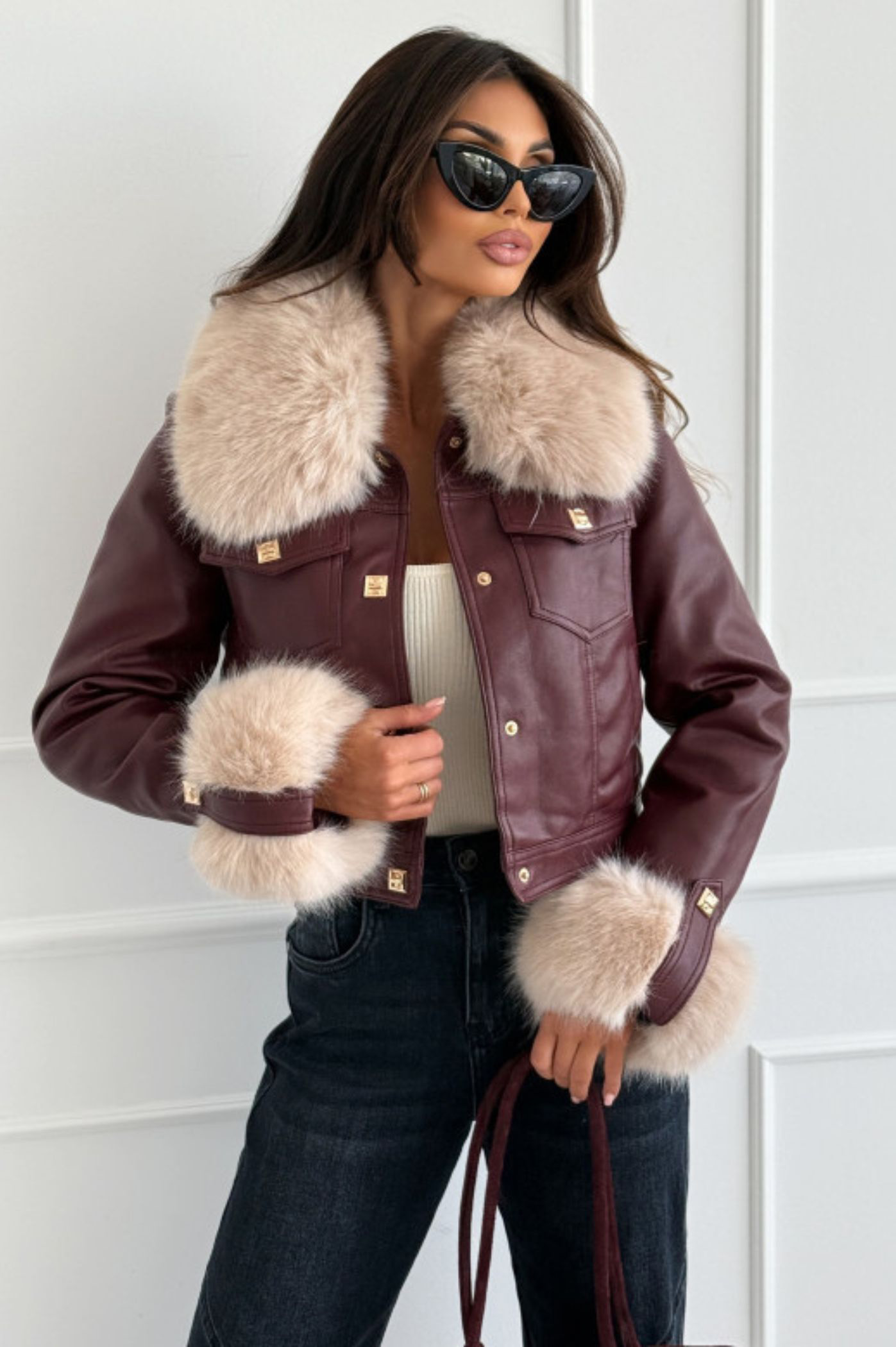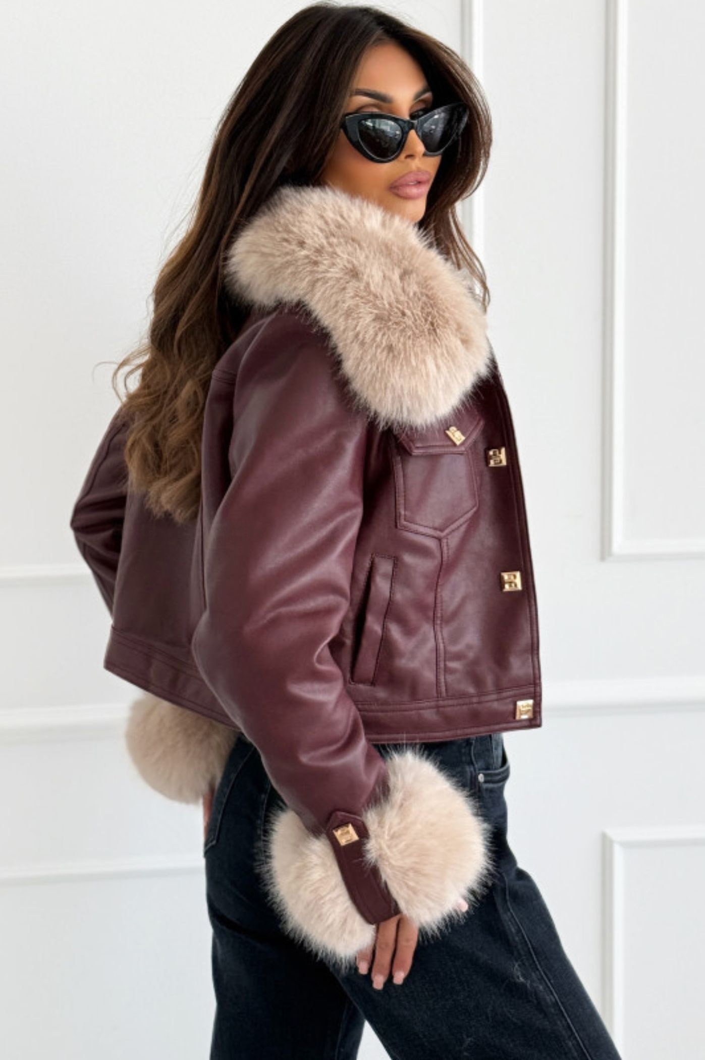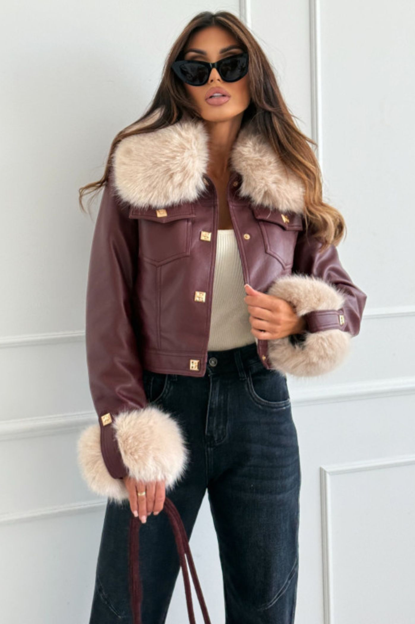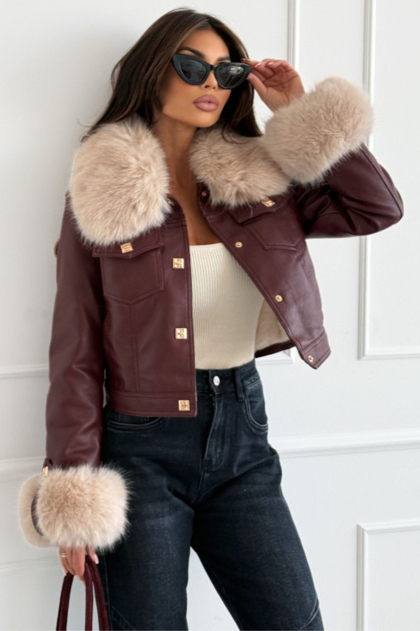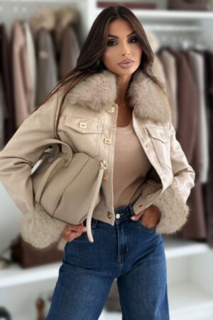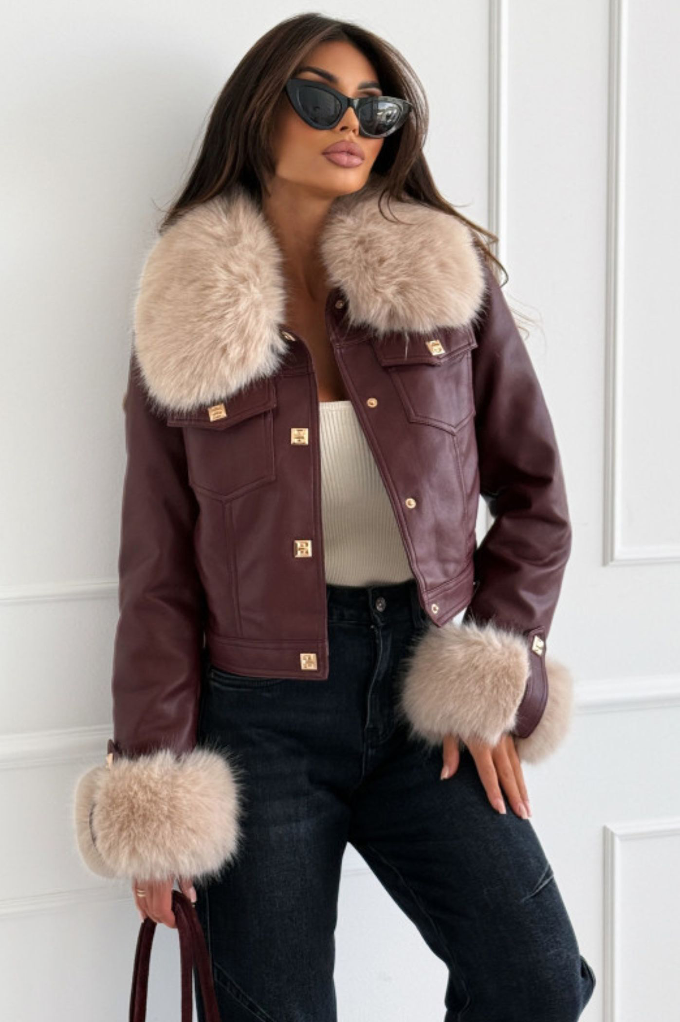 Αναδείξτε το στυλ σας με αυτό το μοντέρνο και ζεστό δερμάτινο jacket. Η πλούσια γούνα στον γιακά και τα μανίκια προσδίδει μια πολυτελή και cozy αίσθηση, ενώ παράλληλα σας προστατεύει από το κρύο. Το jacket κλείνει με πρακτικά κουμπιά και είναι η τέλεια επιλογή για τις πιο κρύες μέρες, προσφέροντας ζεστασιά, άνεση και στυλ.