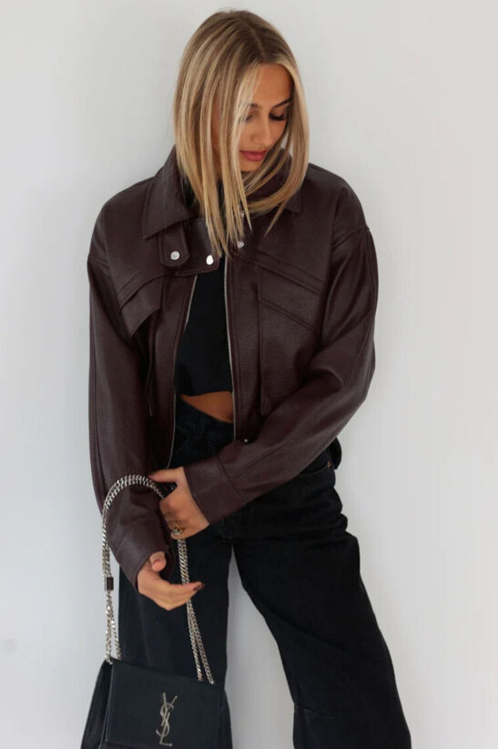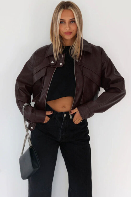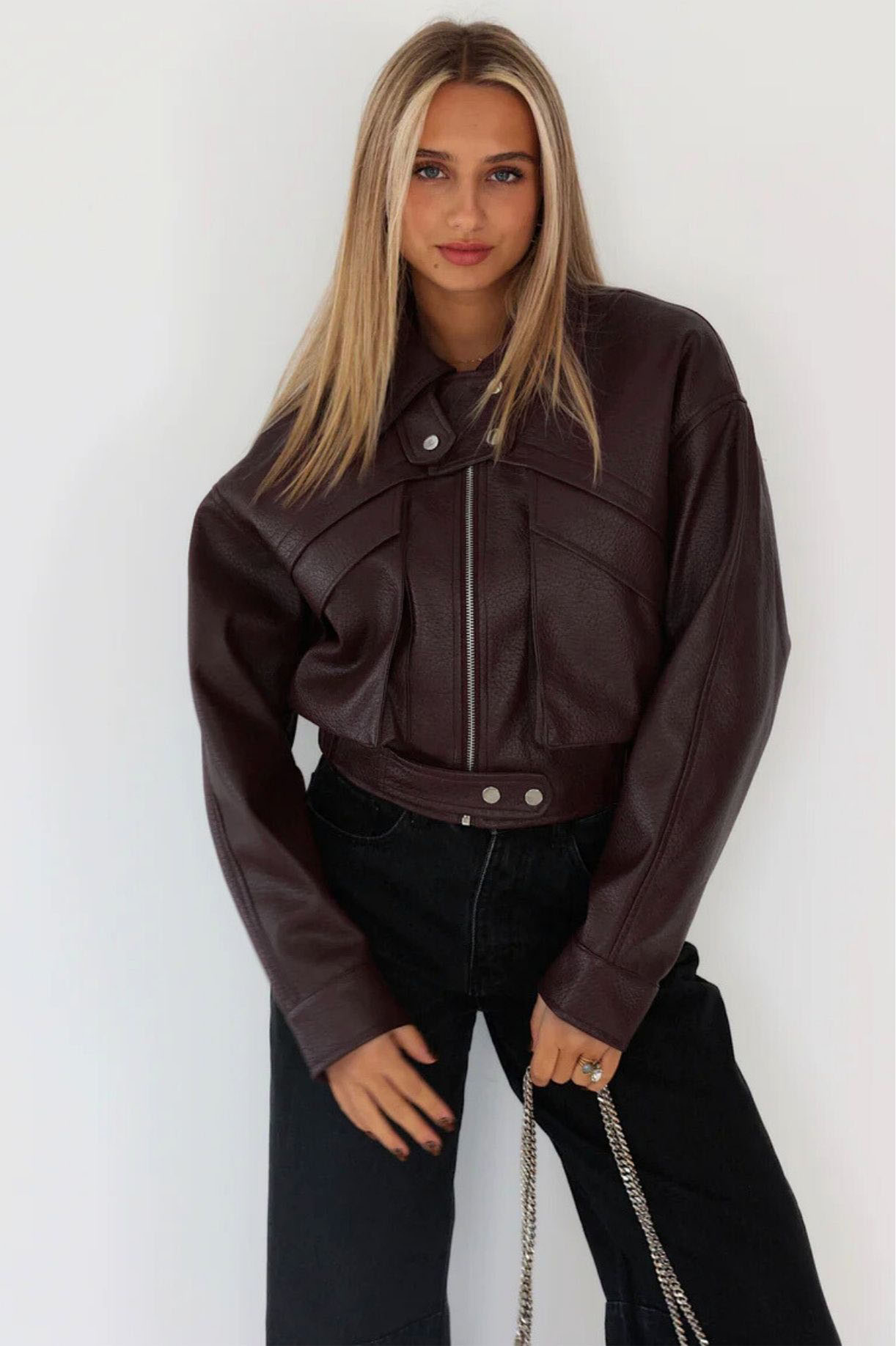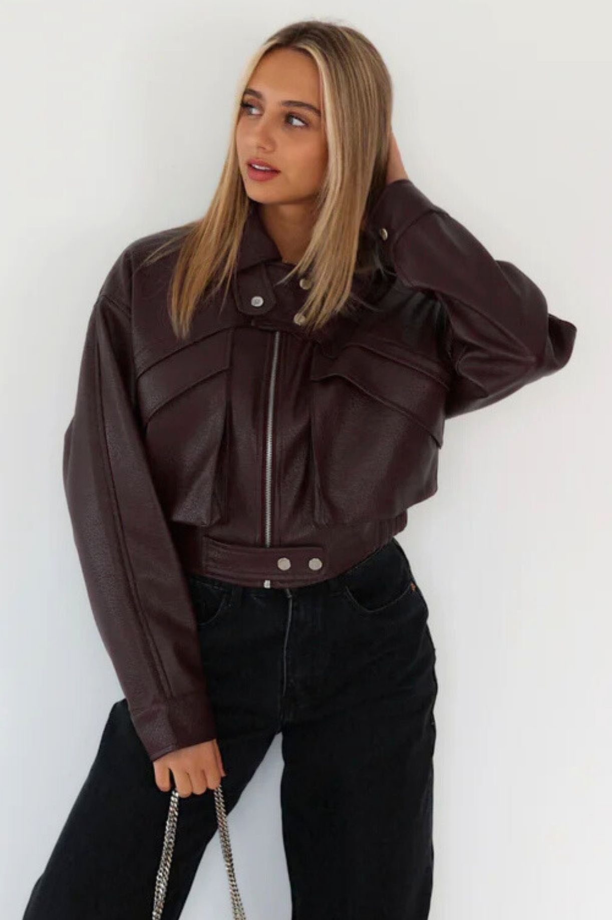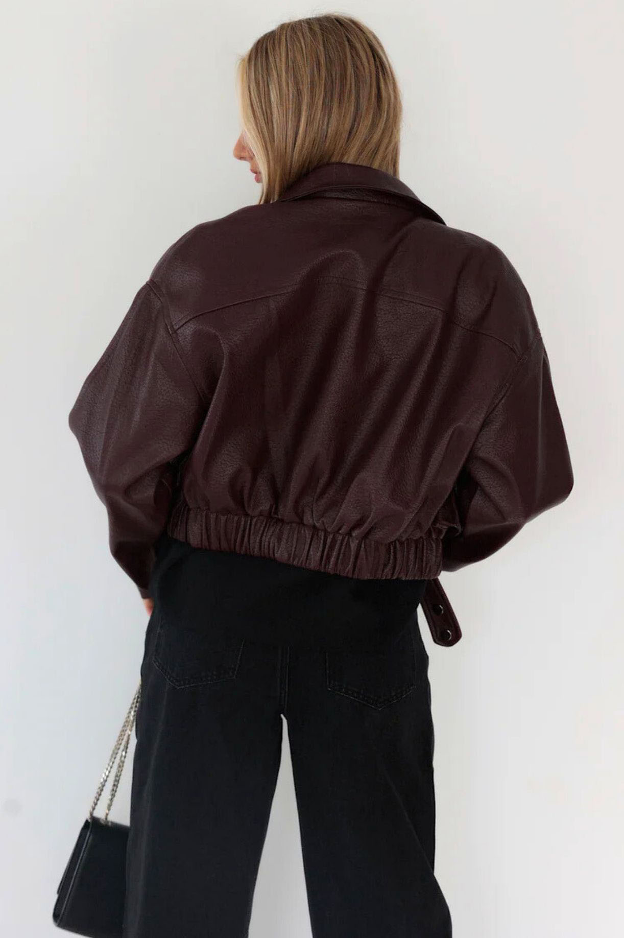 Είναι το ιδανικό πανωφόρι για να αναβαθμίσετε κάθε casual ή streetwear look με έναν αέρα cool κομψότητας. Το jacket είναι φτιαγμένο από μαλακή δερματίνη και διαθέτει boxy/άνετη γραμμή που το καθιστά ιδανικό για layering. Ξεχωρίζει χάρη στις μεγάλες τσέπες στο στήθος και τον διακριτικό γιακά. Κλείνει με φερμουάρ και διαθέτει λεπτομέρειες με μεταλλικά κουμπιά που ενισχύουν το biker/bomber style. Το κοντό μήκος του είναι ιδανικό για να συνδυαστεί με ψηλόμεσα παντελόνια, φούστες ή φορέματα, αναδεικνύοντας τη μέση.