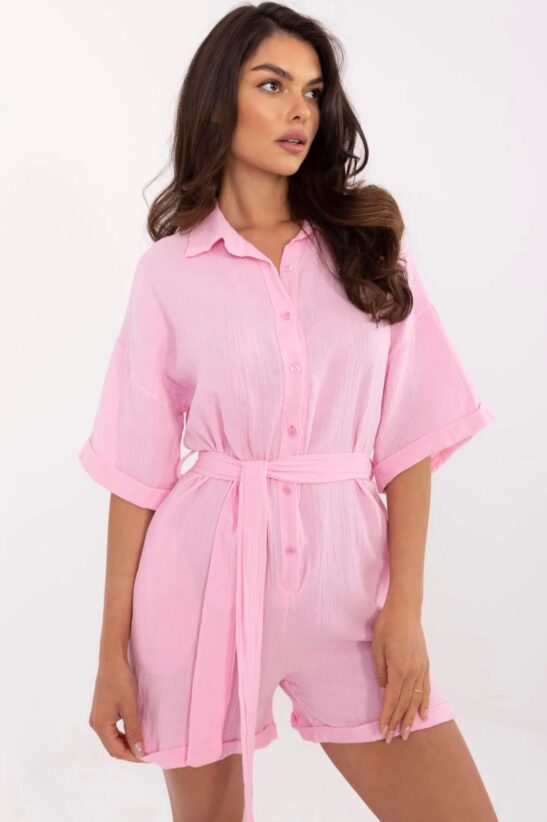 ΟΛΟΣΩΜO SHORTS ΚΟΝΤΟΜΑΝΙΚΟ ΜΕ ΚΟΥΜΠΙΑ ΚΑΙ ΖΩΝΗ – ΡΟΖ