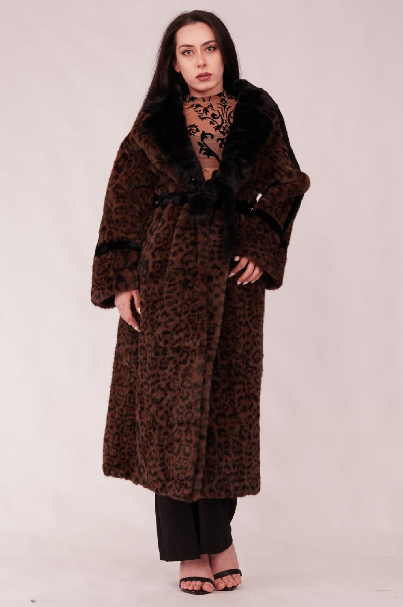 ΠΑΛΤΟ ΓΟΥΝΙΝΟ ΜΑΚΡΥ LEOPARD ΜΕ ΖΩΝΗ – ΚΑΦΕ