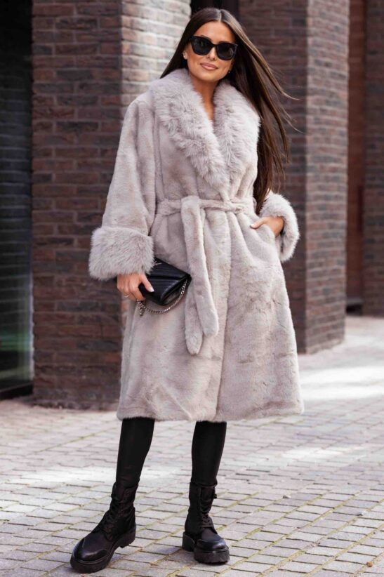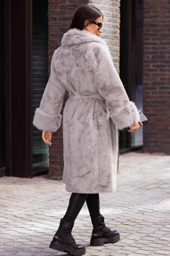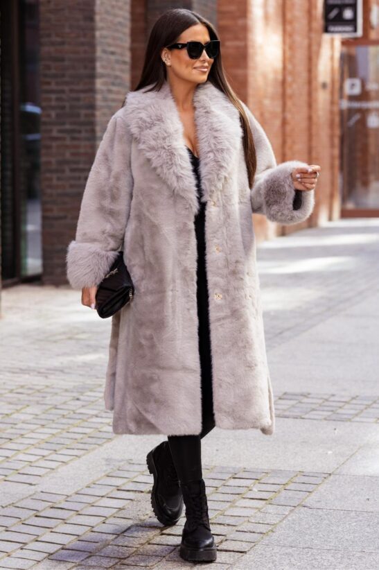 ΠΑΛΤΟ ΓΟΥΝΙΝΟ ΜΑΚΡΥ ΜΕ ΠΛΟΥΣΙΟ ΓΙΑΚΑ ΚΑΙ ΜΑΝΣΕΤΕΣ – ΓΚΡΙ