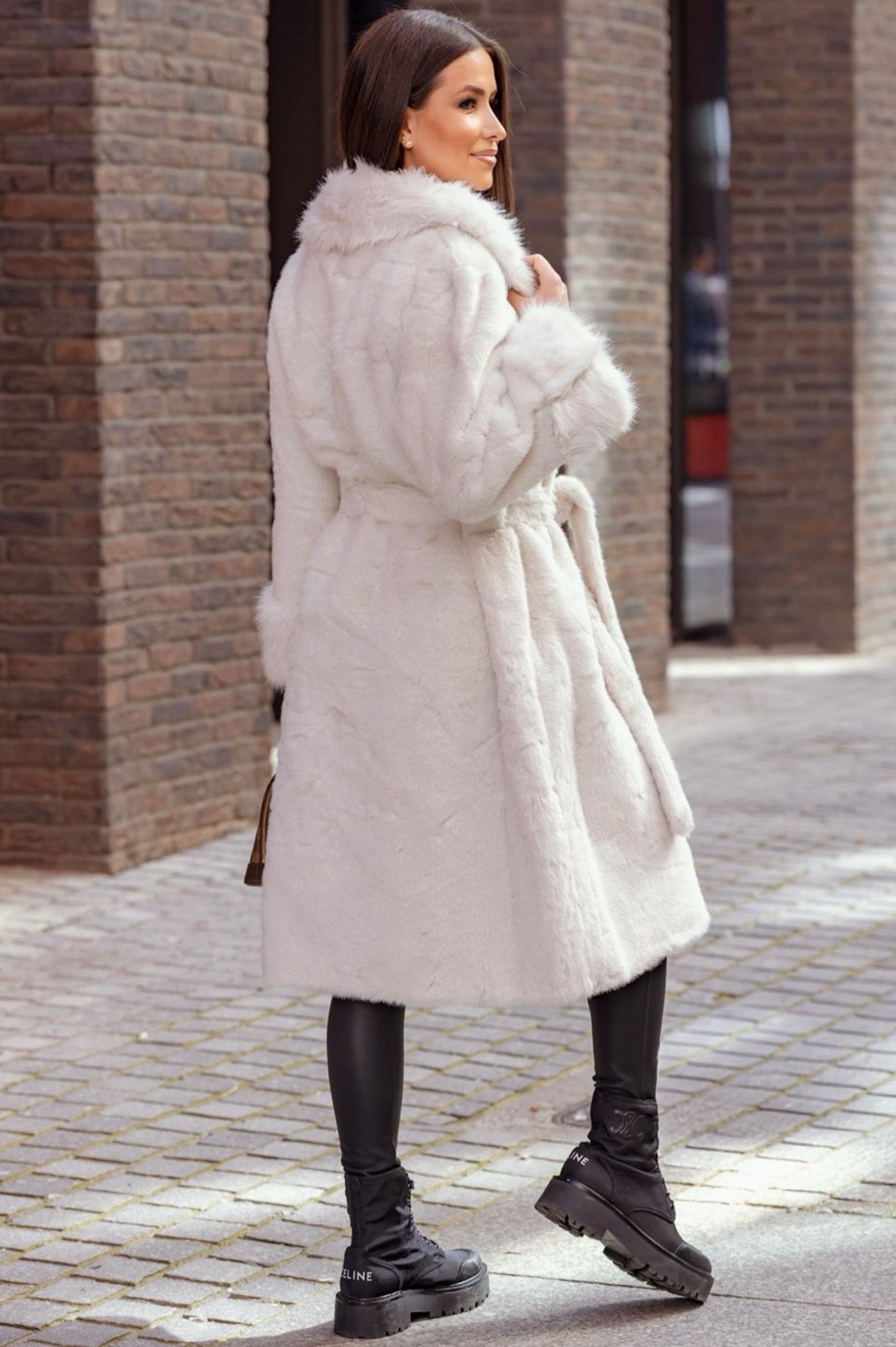 Εντυπωσιάστε με αυτό το πολυτελές, μακρύ γούνινο παλτό Faux Fur σε ένα μοντέρνο χρώμα. Αυτό το παλτό αποτελεί την επιτομή της κομψότητας και της ζεστασιάς για τους χειμερινούς μήνες. Διαθέτει πλούσιο, oversized γιακά και γούνινες μανσέτες στα μανίκια, προσδίδοντας μια αίσθηση glamour και φινέτσας. Η ζώνη από το ίδιο ύφασμα στη μέση τονίζει τη σιλουέτα, προσφέροντας ένα κομψό και θηλυκό αποτέλεσμα. Η μακριά του γραμμή εξασφαλίζει πλήρη κάλυψη και ζεστασιά. Ιδανικό για να αναβαθμίσετε οποιοδήποτε σύνολο, από ένα απλό καθημερινό outfit με κολάν και chunky μποτάκια μέχρι ένα επίσημο βραδινό φόρεμα. Αυτό το γούνινο παλτό είναι το statement piece που δεν πρέπει να λείπει από την γκαρνταρόμπα σας.
