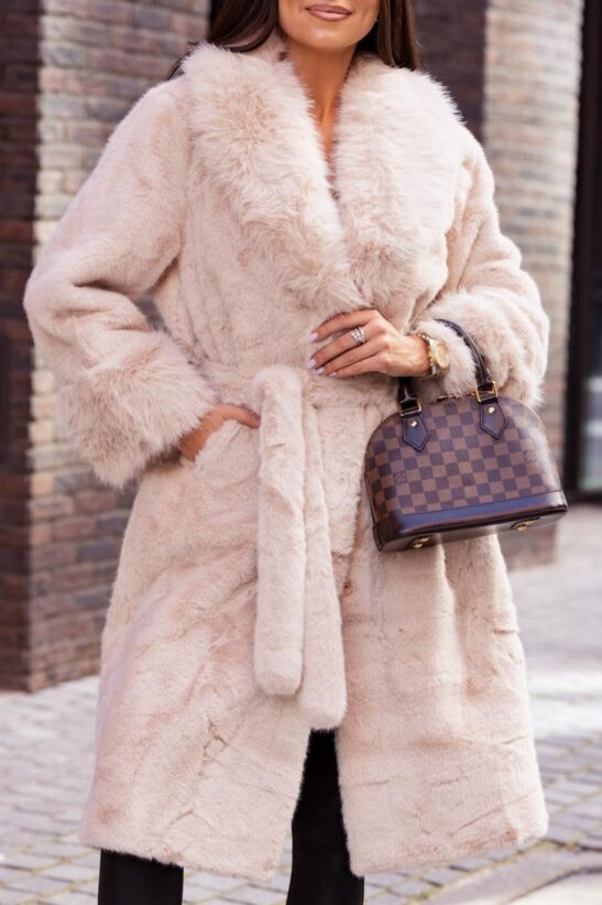 Εντυπωσιάστε με αυτό το πολυτελές, μακρύ γούνινο παλτό Faux Fur σε ένα μοντέρνο χρώμα. Αυτό το παλτό αποτελεί την επιτομή της κομψότητας και της ζεστασιάς για τους χειμερινούς μήνες. Διαθέτει πλούσιο, oversized γιακά και γούνινες μανσέτες στα μανίκια, προσδίδοντας μια αίσθηση glamour και φινέτσας. Η ζώνη από το ίδιο ύφασμα στη μέση τονίζει τη σιλουέτα, προσφέροντας ένα κομψό και θηλυκό αποτέλεσμα. Η μακριά του γραμμή εξασφαλίζει πλήρη κάλυψη και ζεστασιά. Ιδανικό για να αναβαθμίσετε οποιοδήποτε σύνολο, από ένα απλό καθημερινό outfit με κολάν και chunky μποτάκια μέχρι ένα επίσημο βραδινό φόρεμα. Αυτό το γούνινο παλτό είναι το statement piece που δεν πρέπει να λείπει από την γκαρνταρόμπα σας.