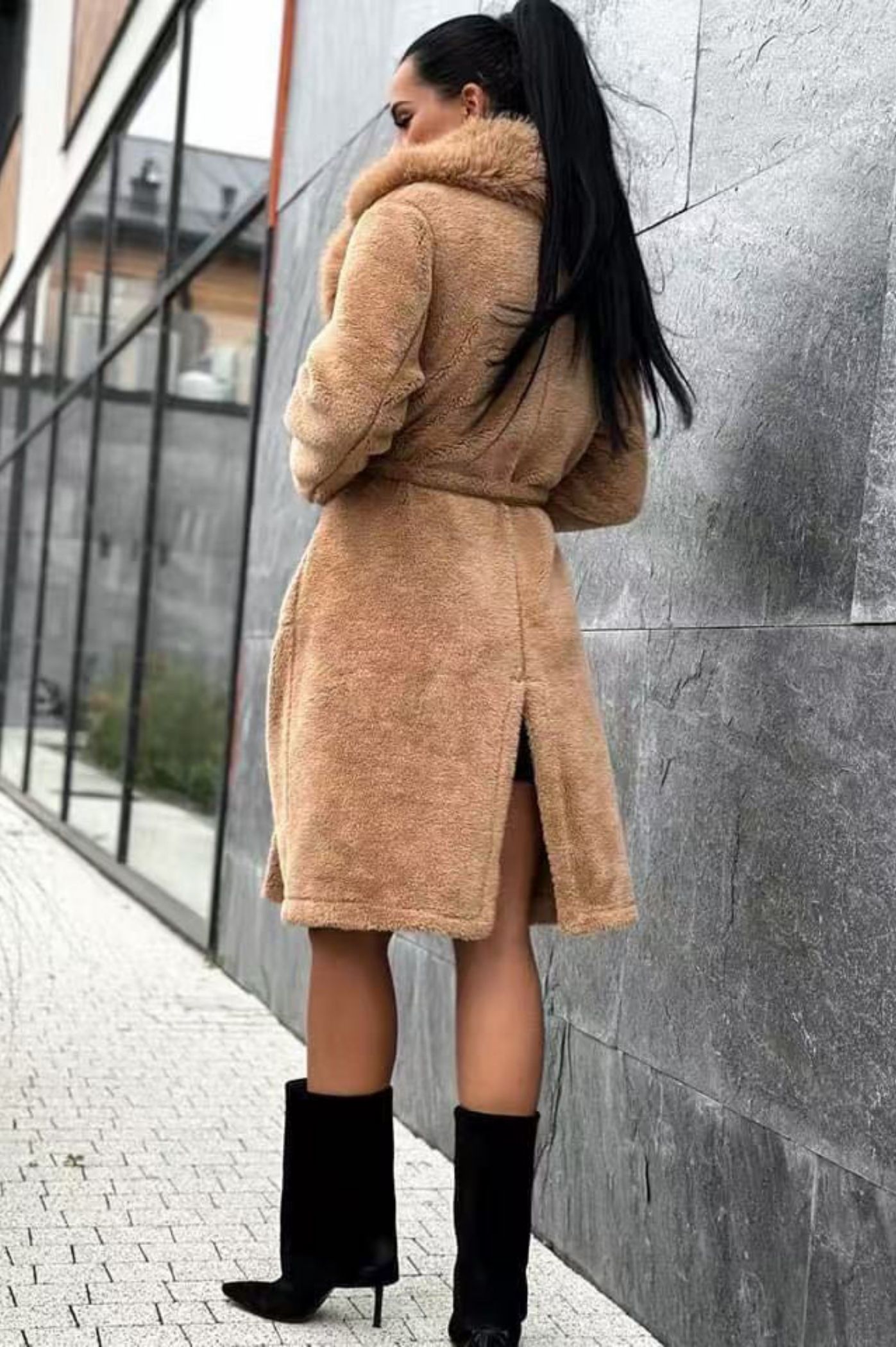 ΠΑΛΤΟ ΓΟΥΝΙΝΟ ΜΕ ΖΩΝΗ ΚΑΙ ΠΛΟΥΣΙΟ ΓΙΑΚΑ – ΚΑΜΕΛ