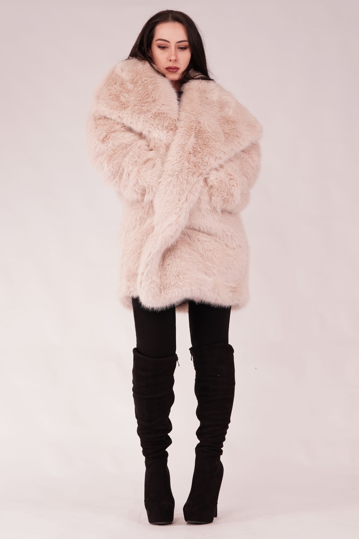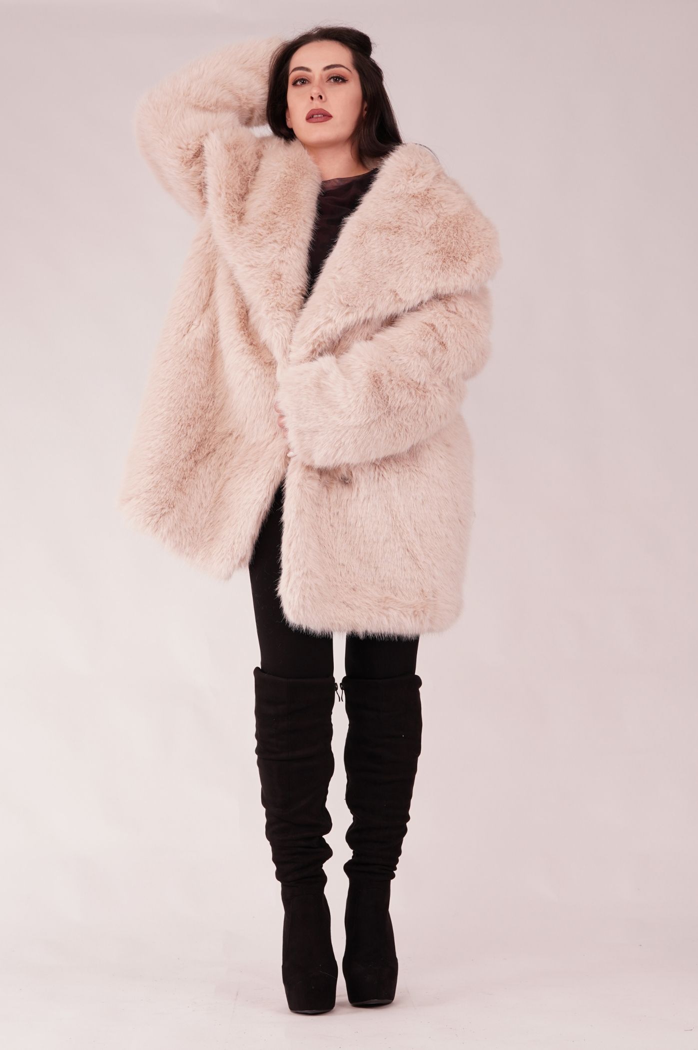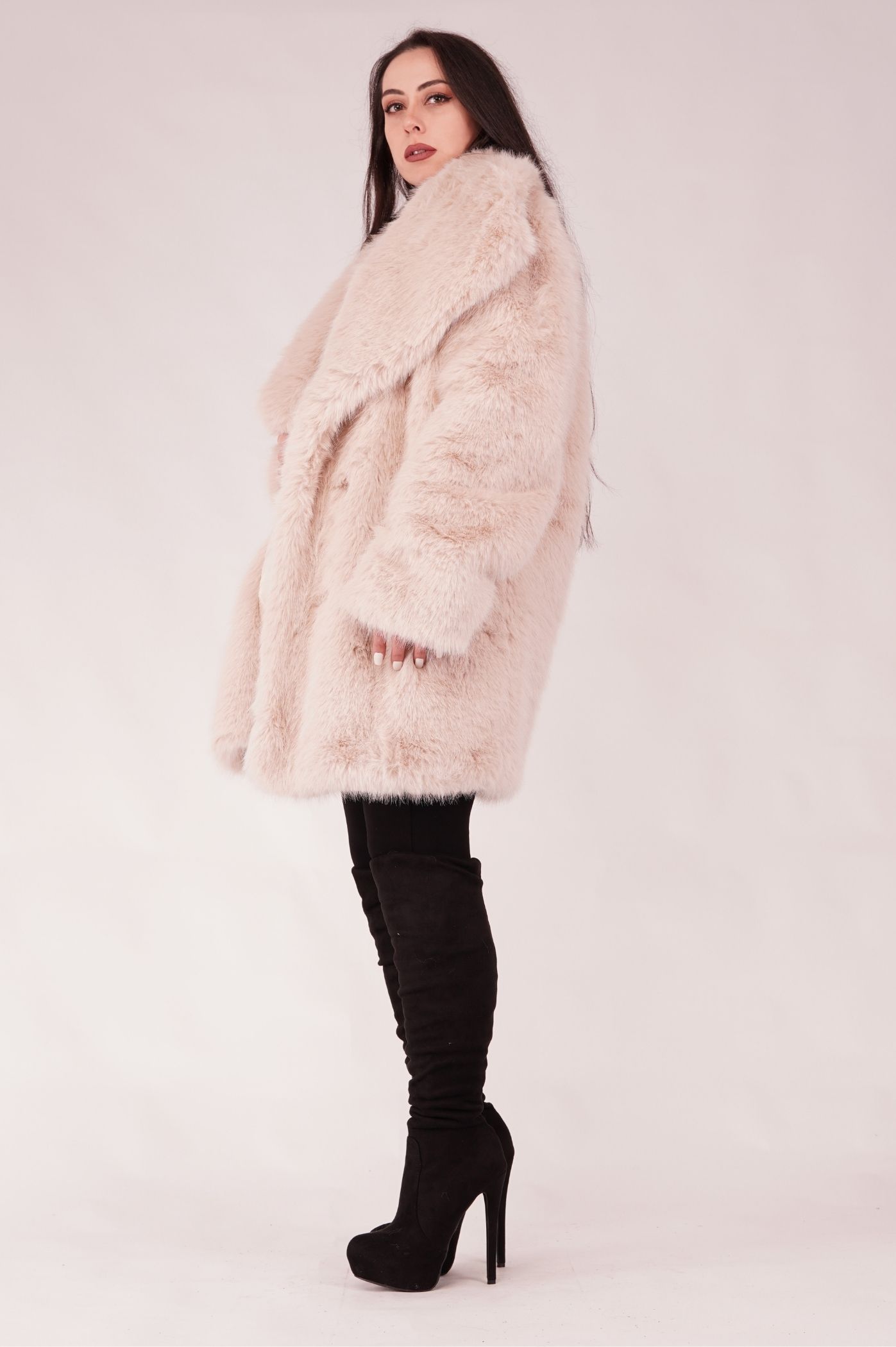 Αναδείξτε το στυλ σας με αυτό το κομμάτι που προσφέρει μέγιστη ζεστασιά και διαχρονικό στυλ. Αυτή η οικολογική γούνα διαθέτει άνετη γραμμή που αγκαλιάζει το σώμα και επιτρέπει το layering. Το μήκος της φτάνει μέχρι το μέσο του μηρού, προσφέροντας εξαιρετική κάλυψη από το κρύο. Διαθέτει μεγάλο, πλούσιο γιακά που μπορεί να ανασηκωθεί για επιπλέον προστασία και δραματικό στυλ, απαλή και πυκνή υφή που μιμείται τέλεια την αληθινή γούνα και πρακτικές τσέπες για άνεση. Φορέστε το πάνω από ένα ζιβάγκο με μπότες πάνω από το γόνατο για ένα glamour και εντυπωσιακό χειμερινό look.