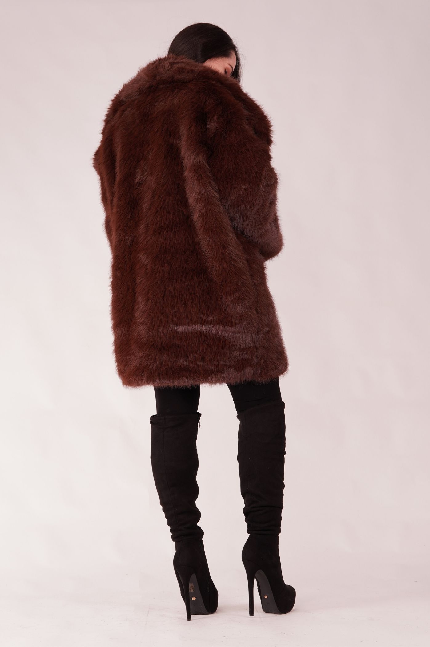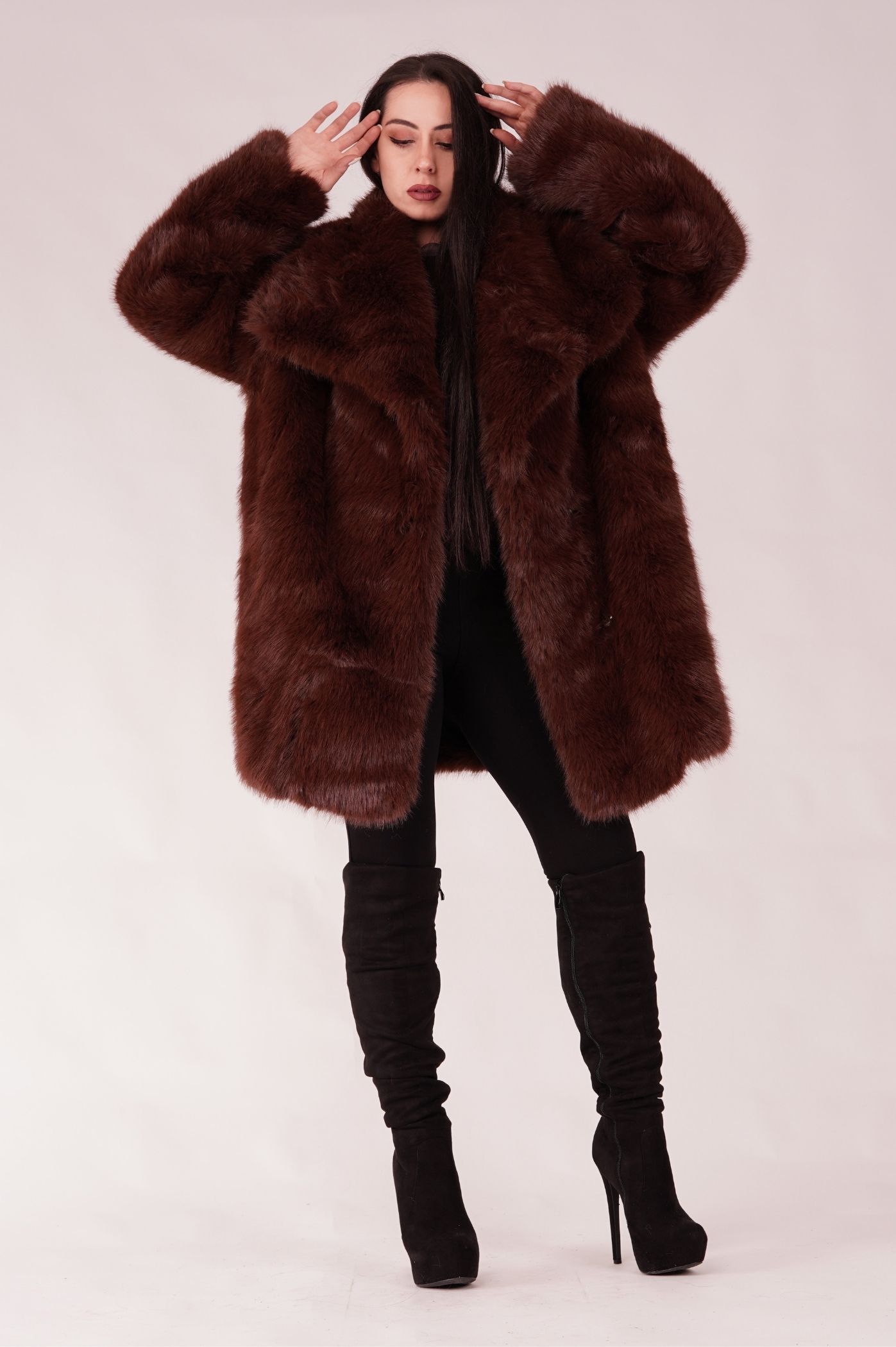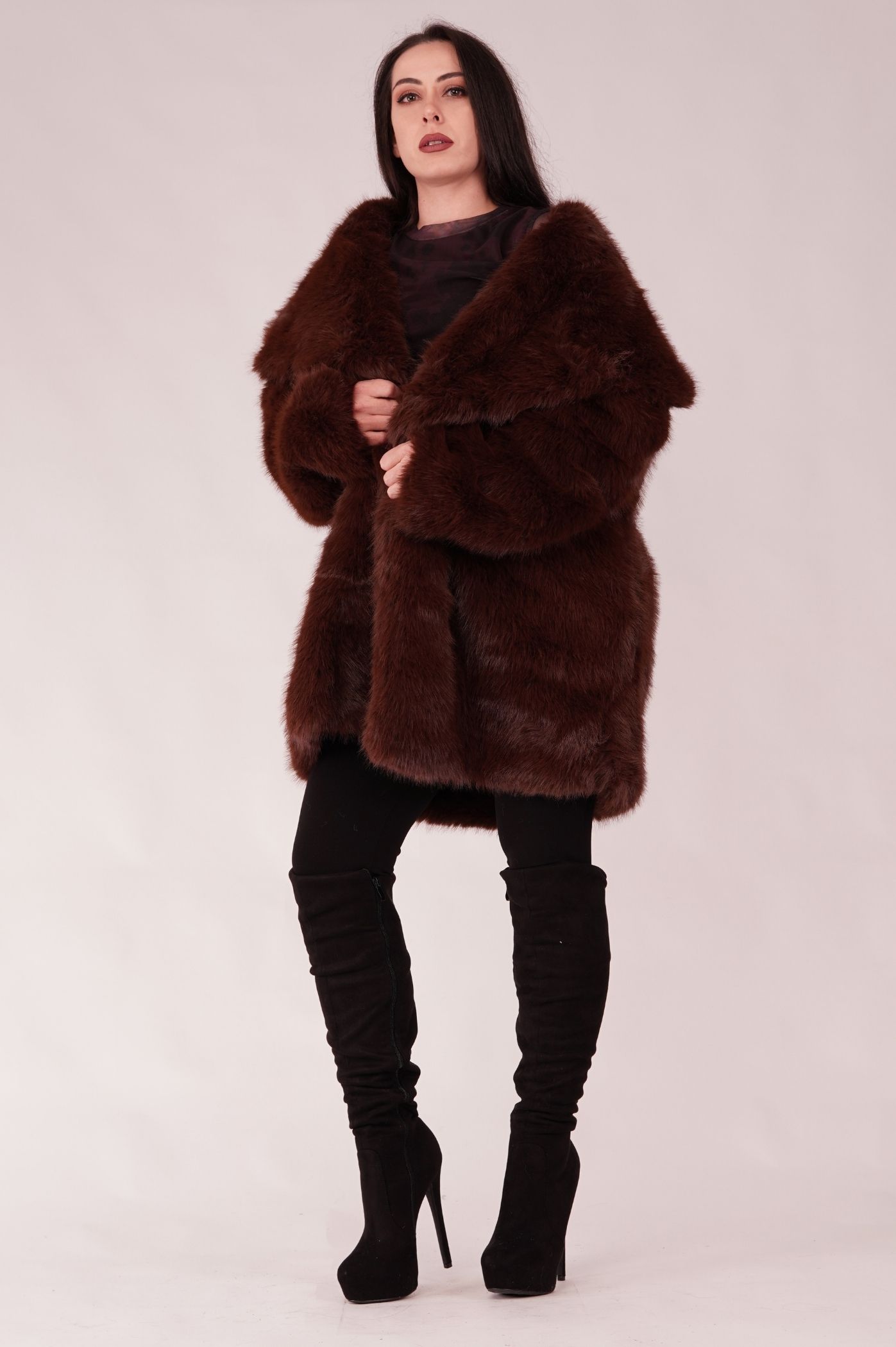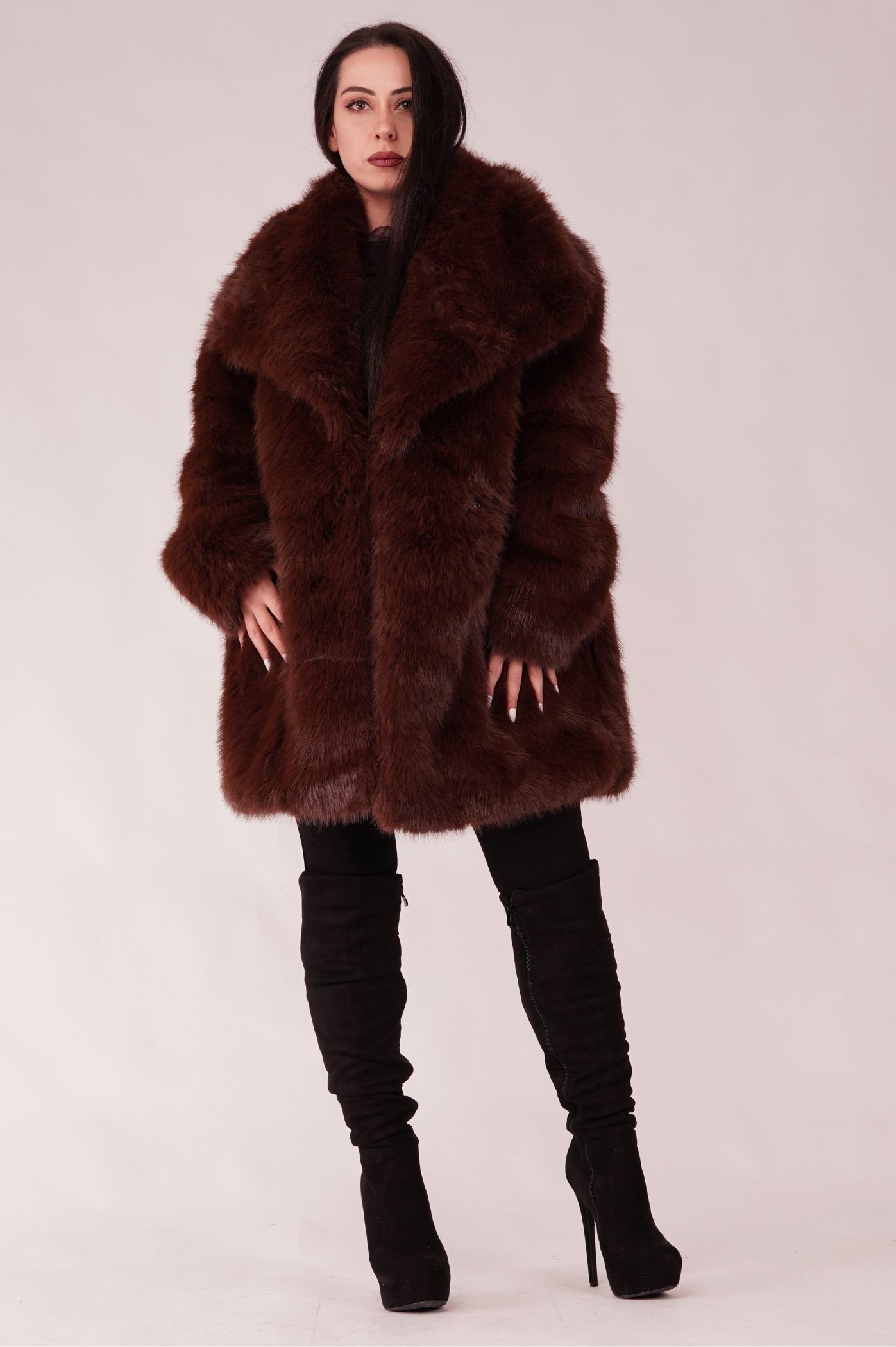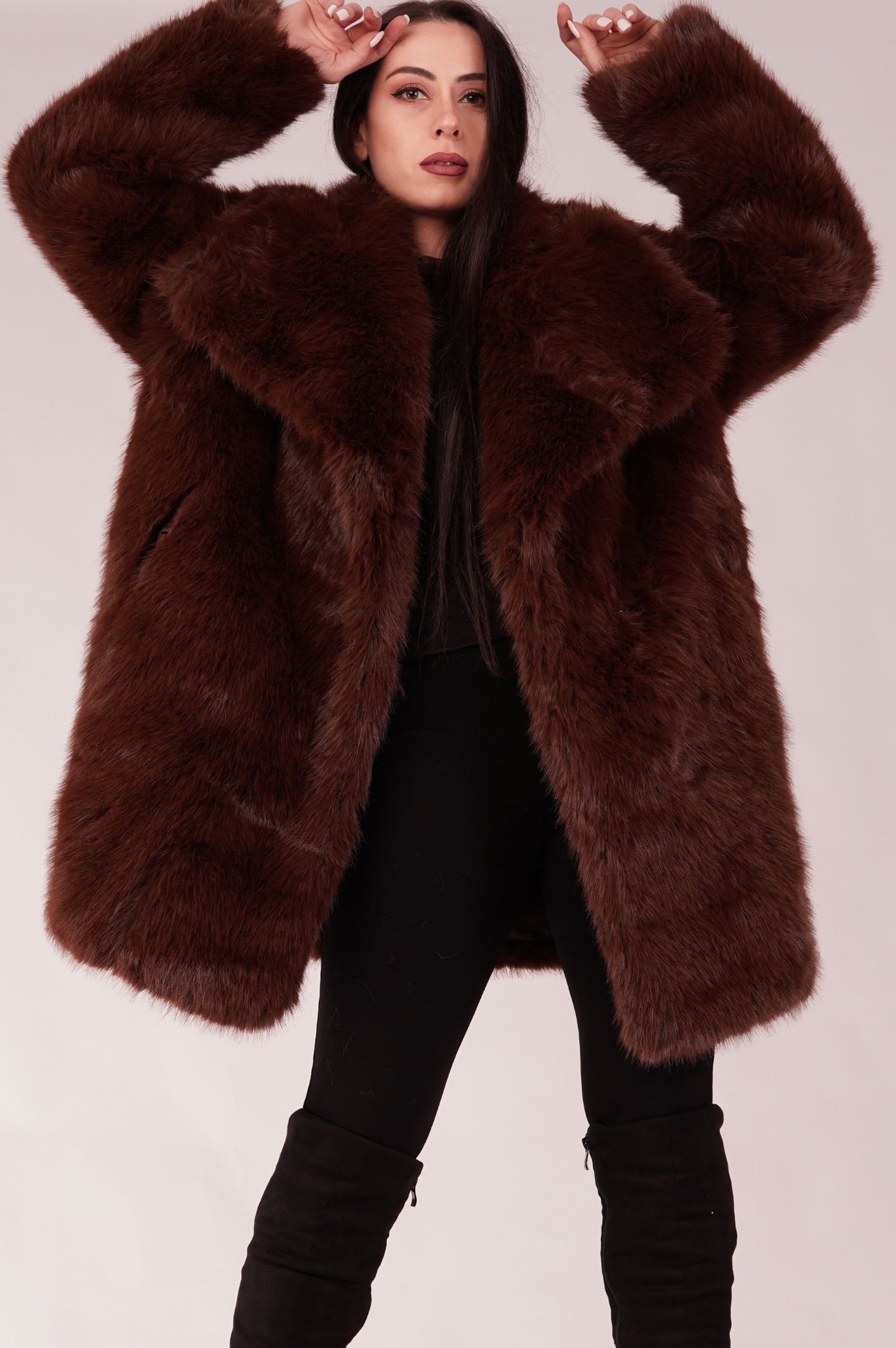 Αναδείξτε το στυλ σας με αυτό το κομμάτι που προσφέρει μέγιστη ζεστασιά και διαχρονικό στυλ. Αυτή η οικολογική γούνα διαθέτει άνετη γραμμή που αγκαλιάζει το σώμα και επιτρέπει το layering. Το μήκος της φτάνει μέχρι το μέσο του μηρού, προσφέροντας εξαιρετική κάλυψη από το κρύο. Διαθέτει μεγάλο, πλούσιο γιακά που μπορεί να ανασηκωθεί για επιπλέον προστασία και δραματικό στυλ, απαλή και πυκνή υφή που μιμείται τέλεια την αληθινή γούνα και πρακτικές τσέπες για άνεση. Φορέστε το πάνω από ένα ζιβάγκο με μπότες πάνω από το γόνατο για ένα glamour και εντυπωσιακό χειμερινό look.