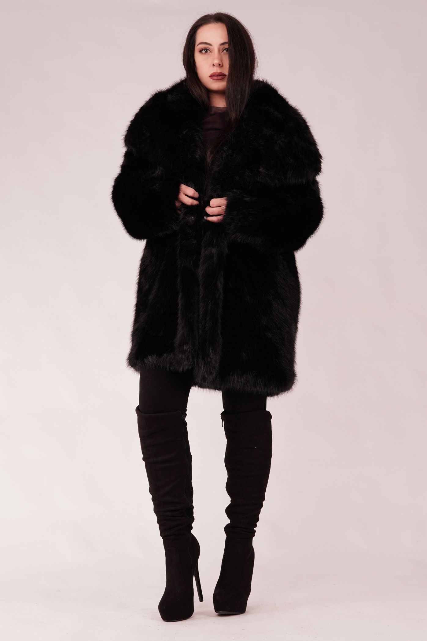 Αναδείξτε το στυλ σας με αυτό το κομμάτι που προσφέρει μέγιστη ζεστασιά και διαχρονικό στυλ. Αυτή η οικολογική γούνα διαθέτει άνετη γραμμή που αγκαλιάζει το σώμα και επιτρέπει το layering. Το μήκος της φτάνει μέχρι το μέσο του μηρού, προσφέροντας εξαιρετική κάλυψη από το κρύο. Διαθέτει μεγάλο, πλούσιο γιακά που μπορεί να ανασηκωθεί για επιπλέον προστασία και δραματικό στυλ, απαλή και πυκνή υφή που μιμείται τέλεια την αληθινή γούνα και πρακτικές τσέπες για άνεση. Φορέστε το πάνω από ένα ζιβάγκο με μπότες πάνω από το γόνατο για ένα glamour και εντυπωσιακό χειμερινό look.