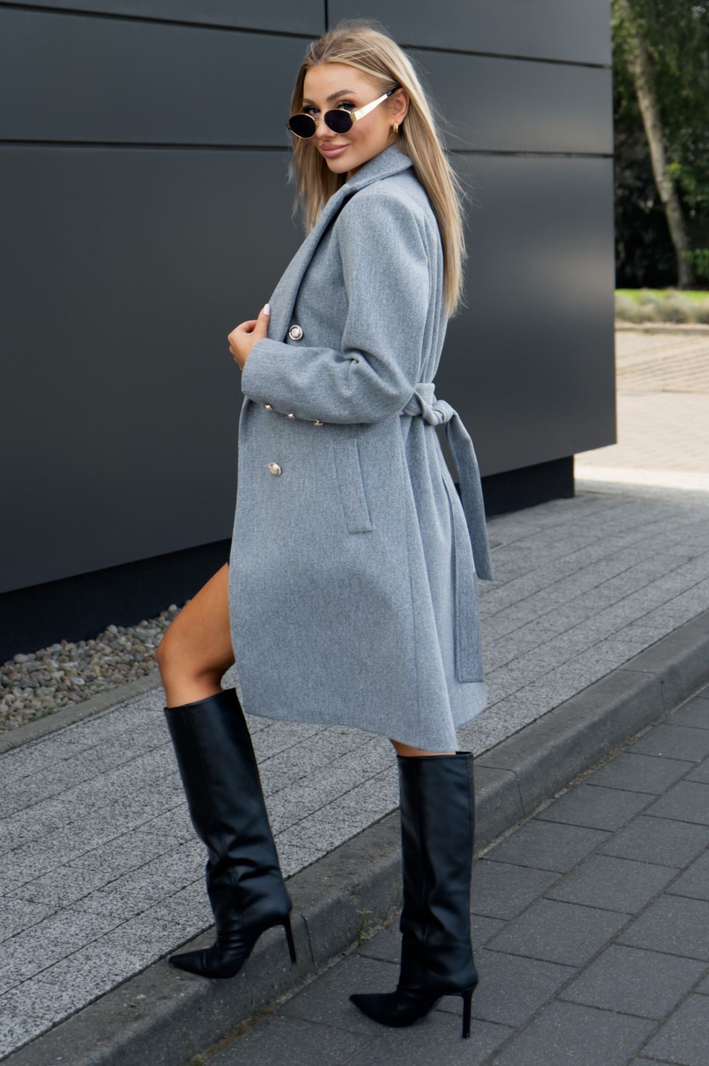 ΠΑΛΤΟ ΜΕ ΧΡΥΣΑ ΚΟΥΜΠΙΑ ΚΑΙ ΖΩΝΗ – ΓΚΡΙ