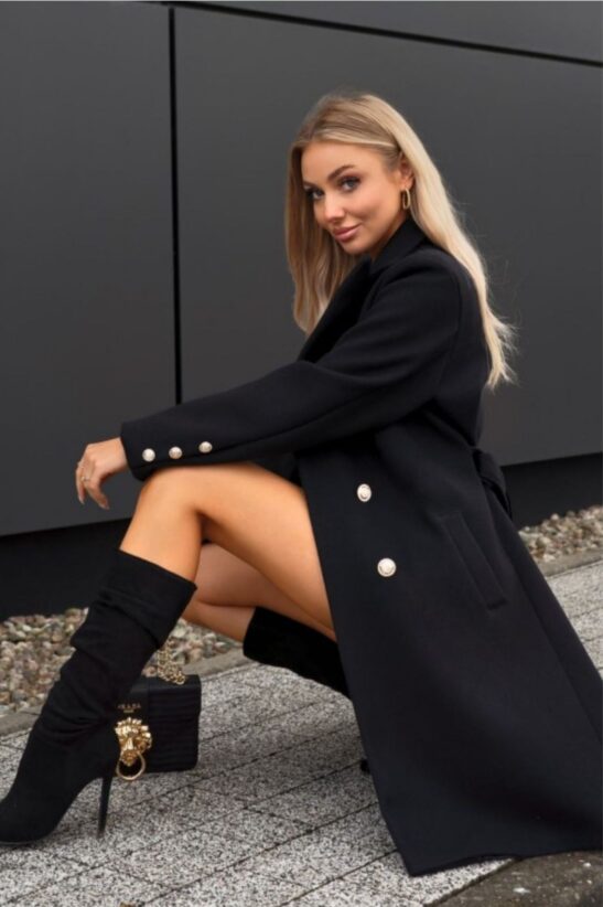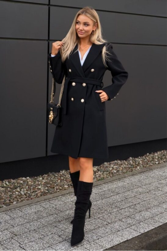 ΠΑΛΤΟ ΜΕ ΧΡΥΣΑ ΚΟΥΜΠΙΑ ΚΑΙ ΖΩΝΗ – ΜΑΥΡΟ