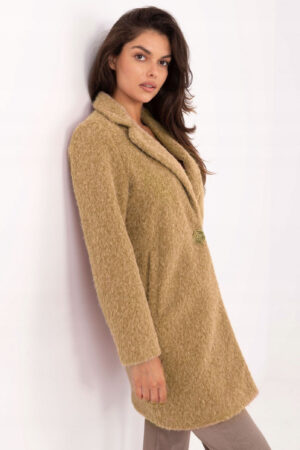 Αναδείξτε το χειμερινό σας στυλ με αυτό το ζεστό και κομψό γυναικείο παλτό μπουκλέ. Ιδανικό για να προσθέσετε υφή και ζεστασιά στην καθημερινή σας εμφάνιση, είναι το απόλυτο πανωφόρι για casual chic και καθημερινές βόλτες. Το παλτό ξεχωρίζει χάρη στο ανάγλυφο μπουκλέ ύφασμα, που του προσδίδει μια πλούσια και απαλή αίσθηση. Η γραμμή του είναι ίσια και άνετη, ενώ κλείνει με ένα διακριτικό μεγάλο κουμπί μπροστά, προσφέροντας μινιμαλιστική φινέτσα. Διαθέτει κομψό πέτο και πρακτικές πλαϊνές τσέπες, καθιστώντας το λειτουργικό και στυλάτο. Μπορεί να φορεθεί πάνω από πλεκτά, τζιν ή υφασμάτινα παντελόνια για ένα look που αποπνέει αβίαστη κομψότητα.