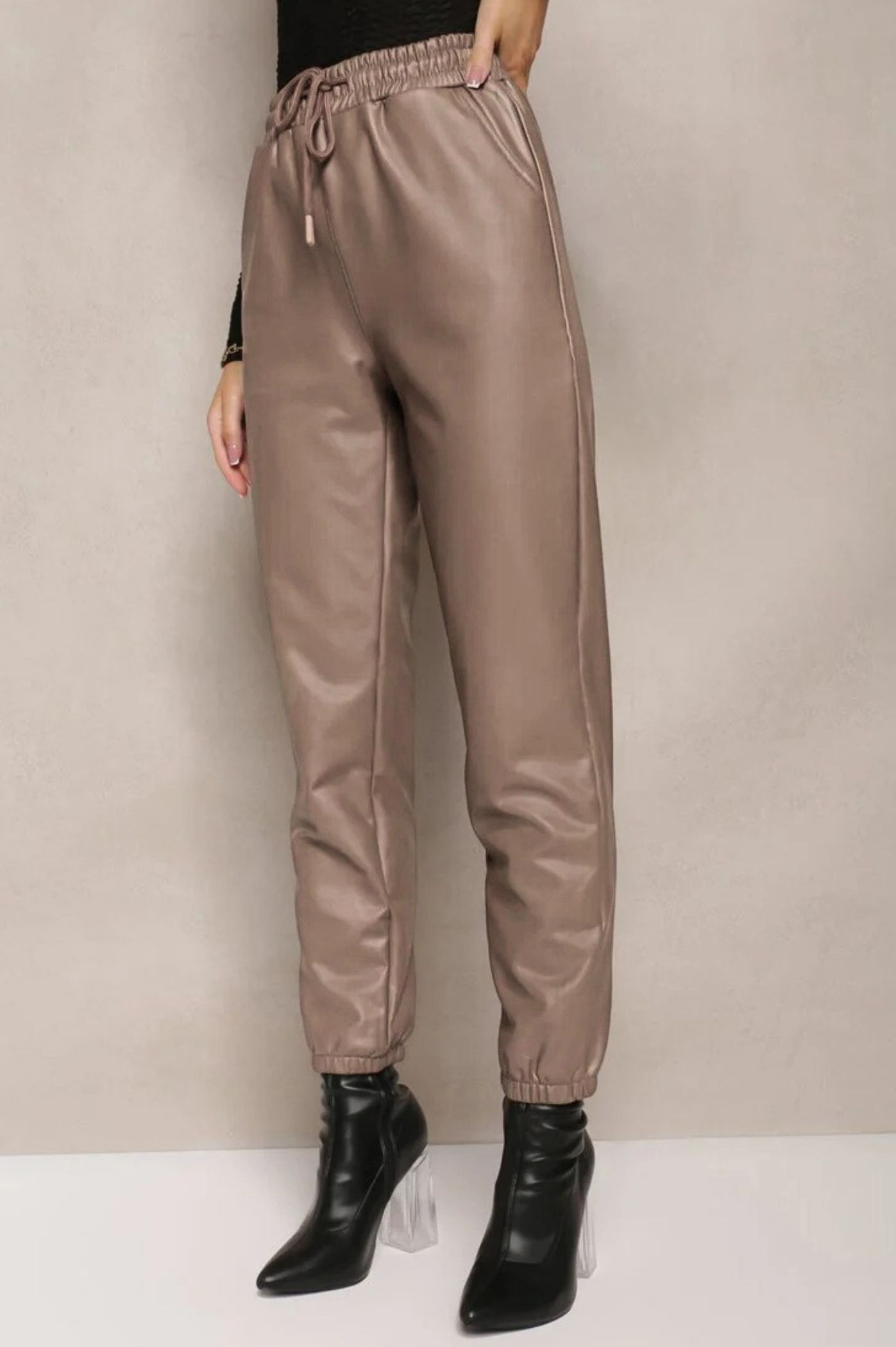 ΠΑΝΤΕΛΟΝΙ ΔΕΡΜΑΤΙΝΗΣ JOGGER ΜΕ ΛΑΣΤΙΧΟ ΣΤΗ ΜΕΣΗ – ΠΟΥΡΟ