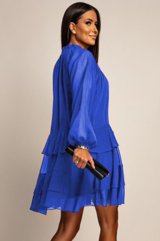 Αναδείξτε το ρομαντικό και κομψό σας στυλ με αυτό το υπέροχο μίνι φόρεμα. Κατασκευασμένο από ανάλαφρο σιφόν, προσφέρει μια άνετη και αέρινη αίσθηση. Το φόρεμα διαθέτει ένα παιχνιδιάρικο βολάν στο τελείωμα, ενώ οι διακριτικές διαφάνειες προσδίδουν αισθησιασμό και φινέτσα. Η άνετη γραμμή του κολακεύει κάθε σωματότυπο και το καθιστά ιδανικό για καλοκαιρινές βόλτες, brunch, cocktail parties ή κομψές casual εμφανίσεις