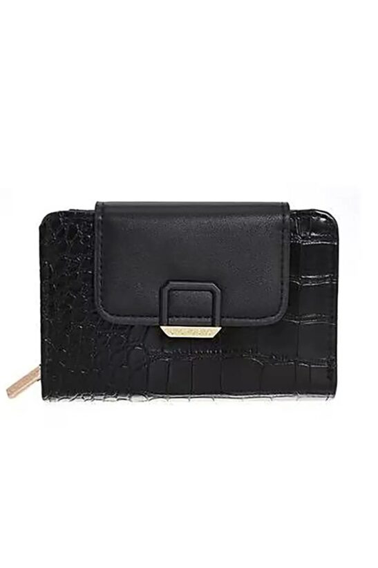 Αναδείξτε την καθημερινή σας οργάνωση με αυτό το κομψό, compact πορτοφόλι! Το γυναικείο πορτοφόλι από δερματίνη συνδυάζει πολυτέλεια και πρακτικότητα, χάρη στην ανάγλυφη υφή κροκό που δίνει μια ακριβή, designer αίσθηση. Το καπάκι κλείνει με ένα κομψό τετράγωνο κούμπωμα από δερματίνη. Είναι ένα ιδανικό πορτοφόλι για μικρές τσάντες και τσάντες χιαστί. Παρά το μικρό του μέγεθος, είναι πλήρως οργανωμένο, διαθέτοντας ξεχωριστά τμήματα, συμπεριλαμβανομένου ενός χώρου που κλείνει με φερμουάρ για κέρματα, καθώς και αρκετές θήκες για κάρτες.