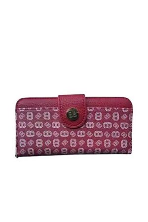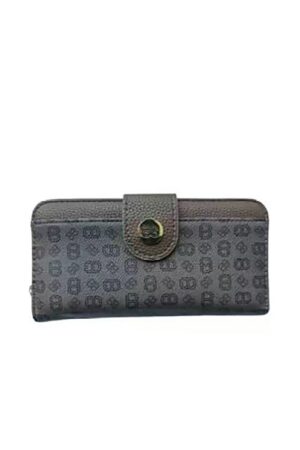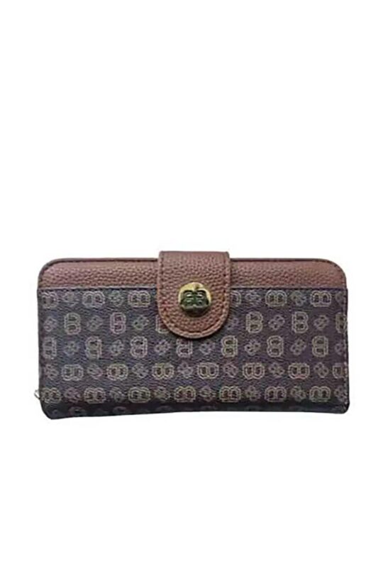 Ανακαλύψτε το κομψό γυναικείο πορτοφόλι σε κλασική καφέ δερματίνη, ιδανικό για να οργανώσετε όλα τα απαραίτητα με στυλ. Το πορτοφόλι διαθέτει ένα μοντέρνο μοτίβο Monogram με λογότυπα σε όλη την επιφάνεια, προσδίδοντας μια νότα πολυτέλειας. Το ασφαλές κλείσιμο γίνεται με ένα εντυπωσιακό, χρυσό μεταλλικό κούμπωμα, που προσθέτει μια διακριτική λάμψη.