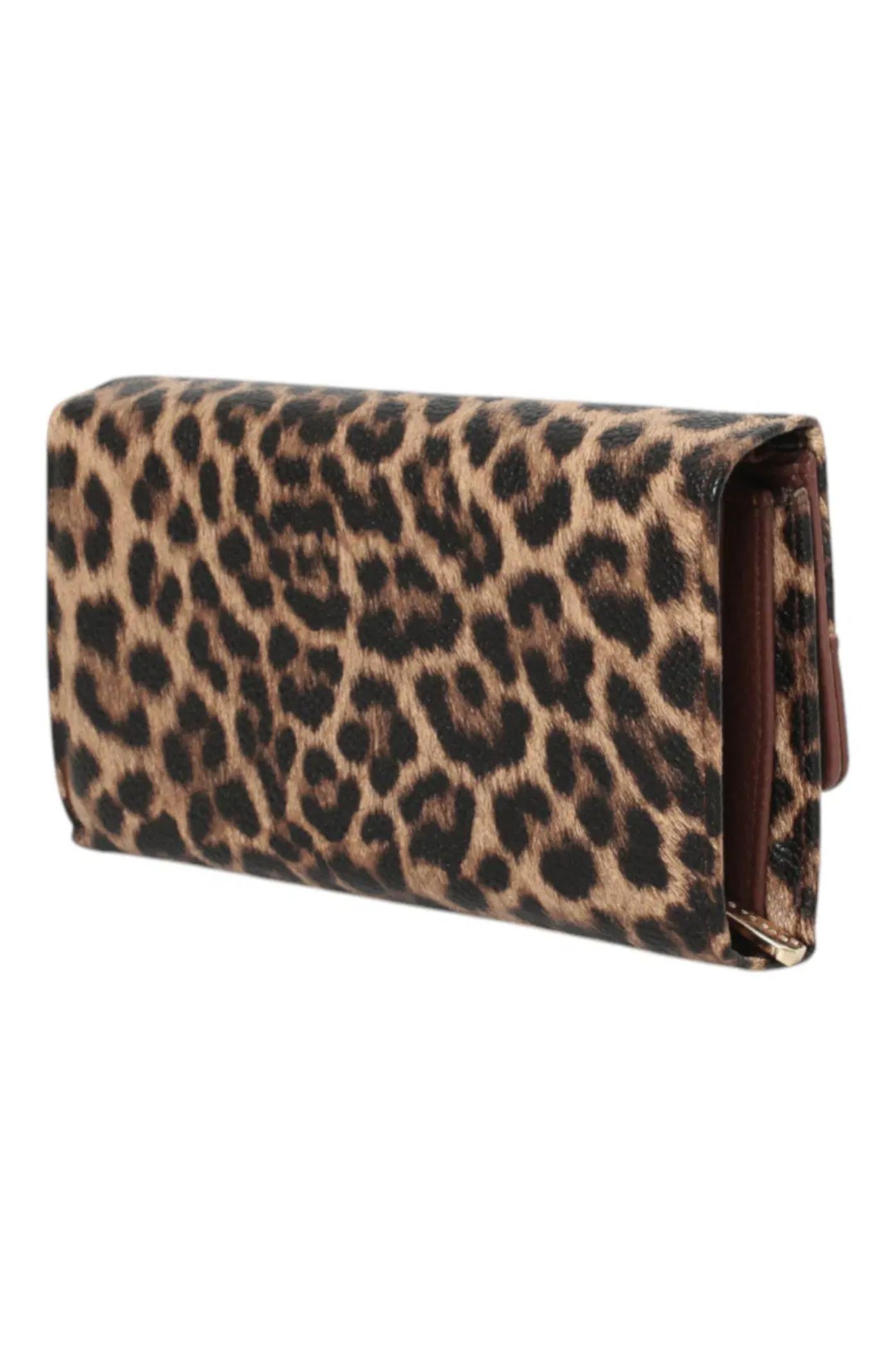 Αναδείξτε το στυλ σας με αυτό το εντυπωσιακό γυναικείο πορτοφόλι σε κλασικό animal print. Η μακρόστενη, κομψή γραμμή του και η υψηλής ποιότητας δερματίνη κατασκευής το καθιστούν ένα απαραίτητο αξεσουάρ για κάθε εμφάνιση. Αυτό που κάνει το συγκεκριμένο μοντέλο να ξεχωρίζει είναι το δίχρωμο κλείσιμο με μαύρη δερμάτινη λωρίδα και μεταλλικό λογότυπο. Αυτή η αντίθεση προσθέτει μοντέρνα και εκλεπτυσμένη νότα στο άγριο μοτίβο. Το πορτοφόλι είναι εξαιρετικά λειτουργικό και πρακτικό, προσφέροντας πολλές θήκες για την απόλυτη οργάνωση. Διαθέτει άφθονο χώρο για κάρτες, χαρτονομίσματα, ταυτότητα και περιλαμβάνει ξεχωριστή, ασφαλή θέση για κέρματα. Είναι ιδανικό για να το κρατήσετε και ως μικρό τσαντάκι χειρός στις βραδινές σας εξόδους.
