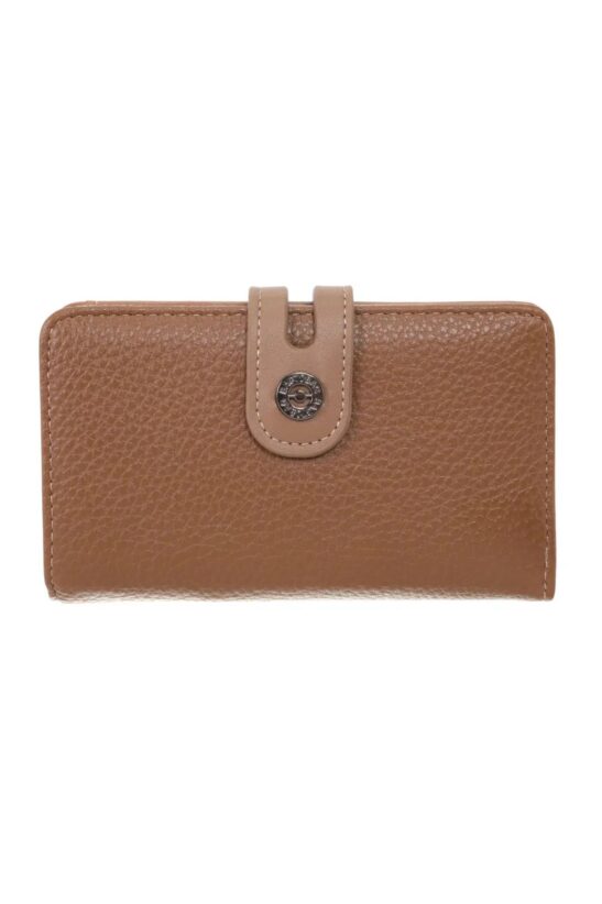 Ανακαλύψτε το δερμάτινο γυναικείο πορτοφόλι σε ζεστό πούρο χρώμα που συνδυάζει διαχρονική κομψότητα και πρακτικότητα. Κατασκευασμένο από γνήσιο δέρμα με ανάγλυφη υφή, προσφέρει πολυτελή αίσθηση και εξαιρετική αντοχή. Το ιδιαίτερο μεταλλικό κούμπωμα στο κέντρο όχι μόνο προσθέτει ένα μοναδικό στυλιστικό στοιχείο, αλλά εξασφαλίζει και την απόλυτη ασφάλεια των πολύτιμων αντικειμένων σας. Με μεγάλο μέγεθος και έξυπνη εσωτερική οργάνωση, διαθέτει πολλαπλές θήκες για χαρτονομίσματα, κέρματα και πλήθος καρτών. Είναι το ιδανικό αξεσουάρ για την καθημερινότητά σας, προσφέροντας άνεση και οργάνωση με μια πινελιά φινέτσας. Αποκτήστε αυτό το κομψό καφέ πορτοφόλι με κούμπωμα και αναβαθμίστε το στυλ σας.