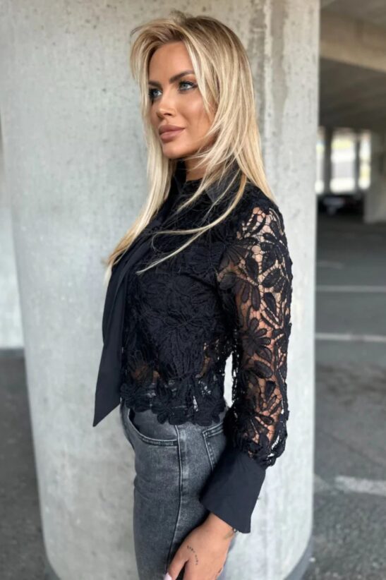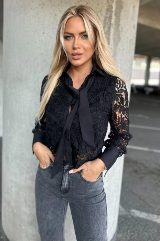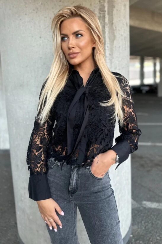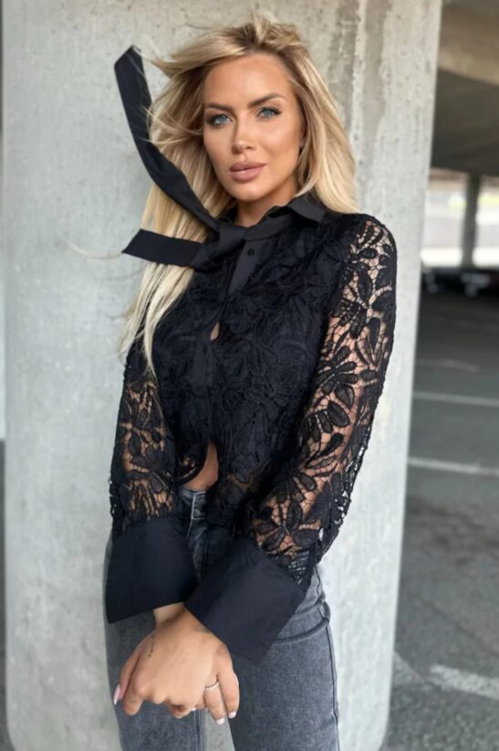 Αναδείξτε το elegant look σας με αυτό το υπέροχο πουκάμισο από κιπούρ δαντέλα. Η ρομαντική δαντέλα και ο φινετσάτος φιόγκος στον λαιμό εκπέμπουν κομψότητα και θηλυκότητα. Ιδανική επιλογή για ιδιαίτερες περιστάσεις, γραφείο ή formal εμφανίσεις.