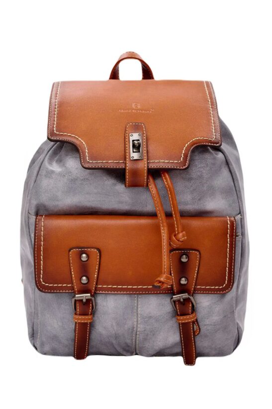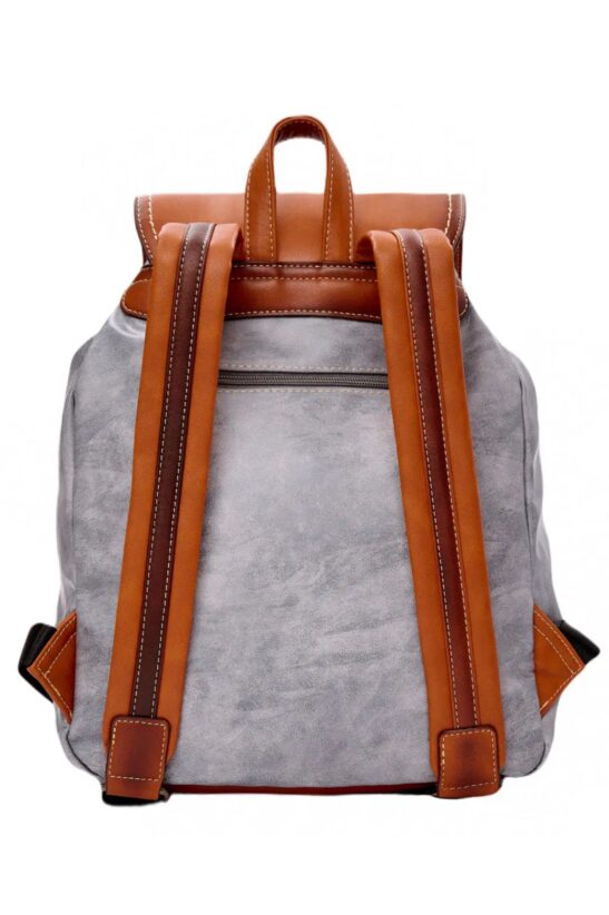 Σακίδιο πλάτης από υψηλής ποιότητα τεχνόδερμα. Διαθέτει έναν κύριο χώρο που κλείνει πρώτα σαν πουγκί κ έπειτα με ιδιόμορφο κούμπωμα! Εσωτερικά διαθέτει θήκη με φερμουάρ στην  πίσω όψη της κ στην εμπρός διαθέτει βοηθητική ανοιχτή θήκη. Διαθέτει ρυθμιζόμενα λουράκια.