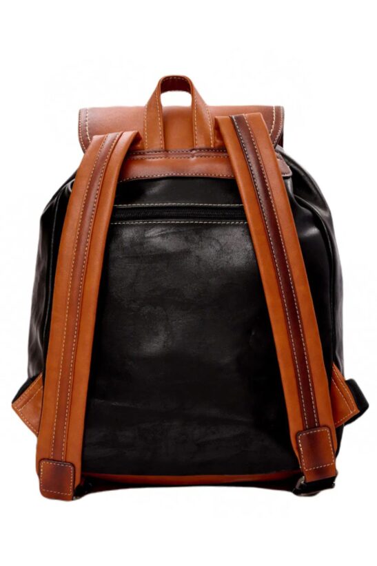 Σακίδιο πλάτης από υψηλής ποιότητα τεχνόδερμα. Διαθέτει έναν κύριο χώρο που κλείνει πρώτα σαν πουγκί κ έπειτα με ιδιόμορφο κούμπωμα! Εσωτερικά διαθέτει θήκη με φερμουάρ στην  πίσω όψη της κ στην εμπρός διαθέτει βοηθητική ανοιχτή θήκη. Διαθέτει ρυθμιζόμενα λουράκια.