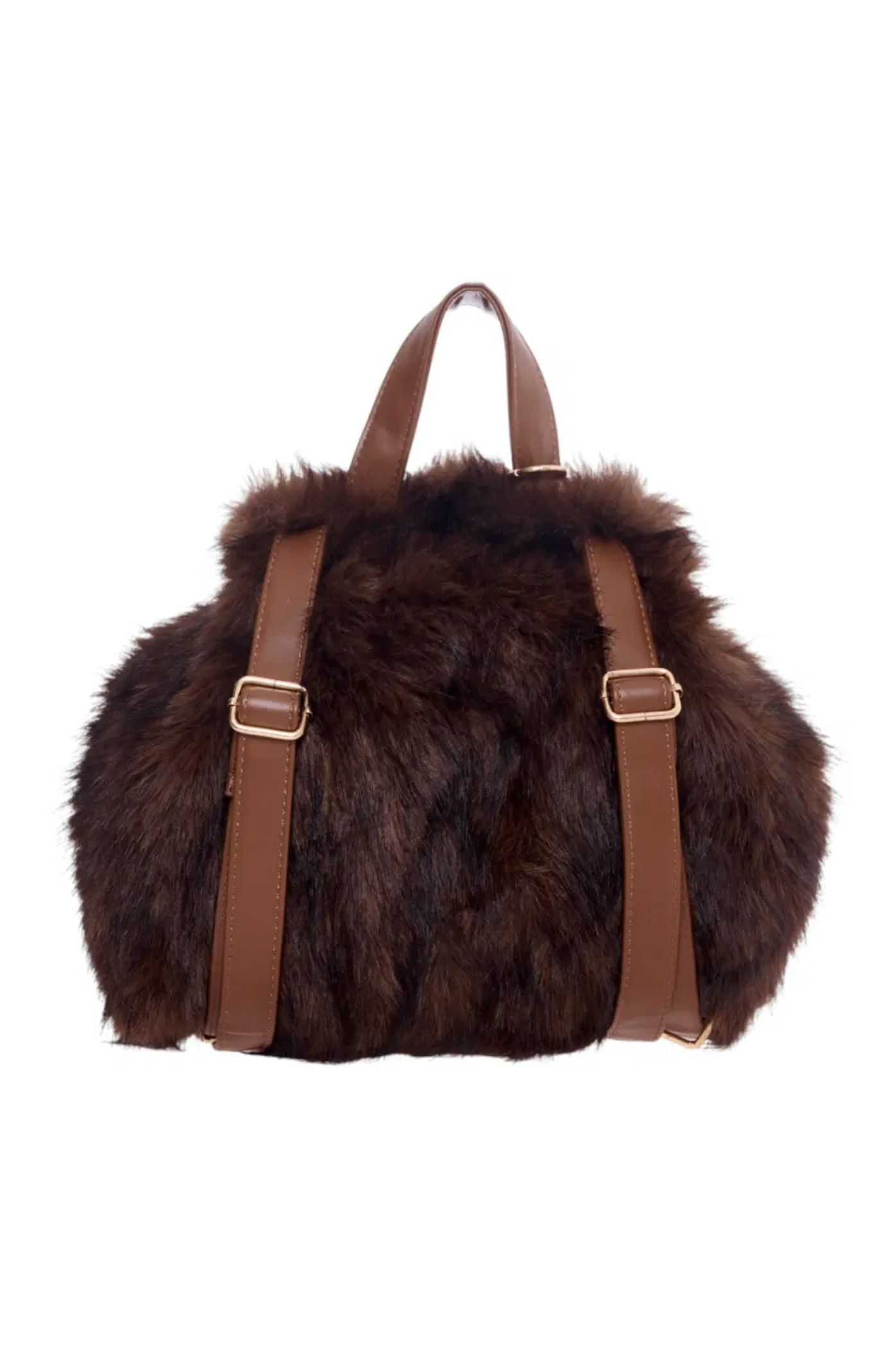 Αναδείξτε το καθημερινό σας στυλ με την πιο χαριτωμένη και μοντέρνα γούνινη τσάντα πλάτης. Μοντέρνα τσάντα πλάτης με κλείσιμο τύπου πουγκί και καπάκι που κλείνει με κούμπωμα, εξασφαλίζοντας ασφάλεια και εύκολη πρόσβαση. Πλούσια, μαλακή τεχνητή γούνα υψηλής ποιότητας, ιδανική για να προσθέσετε ζεστασιά και υφή στα χειμερινά σας outfits. Διακριτικό μεταλλικό μενταγιόν με το λογότυπο της εταιρείας, που προσθέτει μια νότα λάμψης. Διαθέτει χειρολαβή από δερματίνη για εύκολο κράτημα και τους απαραίτητους ρυθμιζόμενους ιμάντες για την πλάτη.
