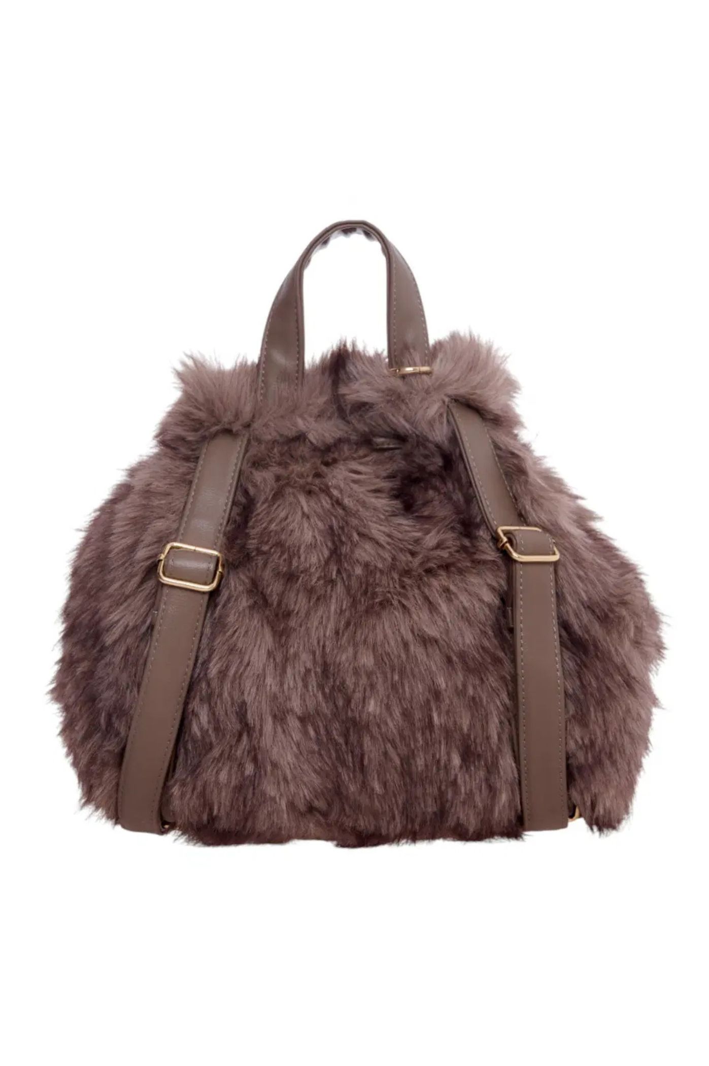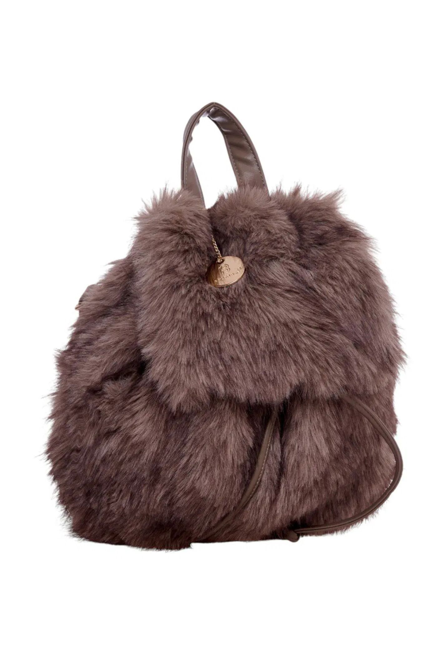 Αναδείξτε το καθημερινό σας στυλ με την πιο χαριτωμένη και μοντέρνα γούνινη τσάντα πλάτης. Μοντέρνα τσάντα πλάτης με κλείσιμο τύπου πουγκί και καπάκι που κλείνει με κούμπωμα, εξασφαλίζοντας ασφάλεια και εύκολη πρόσβαση. Πλούσια, μαλακή τεχνητή γούνα υψηλής ποιότητας, ιδανική για να προσθέσετε ζεστασιά και υφή στα χειμερινά σας outfits. Διακριτικό μεταλλικό μενταγιόν με το λογότυπο της εταιρείας, που προσθέτει μια νότα λάμψης. Διαθέτει χειρολαβή από δερματίνη για εύκολο κράτημα και τους απαραίτητους ρυθμιζόμενους ιμάντες για την πλάτη.