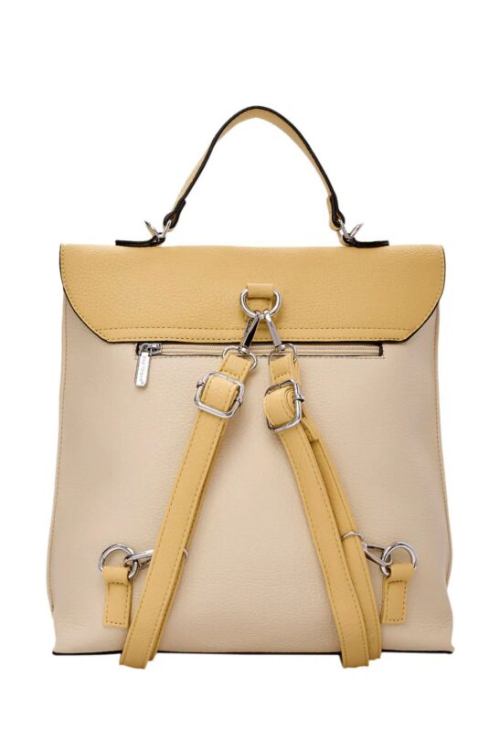 Σακίδιο πλάτης από υψηλής ποιότητας τεχνόδερμα! Διαθέτει κύριο χώρο που κλείνει με φερμουάρ και με καπάκι με ιδιόμορφο κούμπωμα. Διαθέτει θήκη στο πίσω μέρος που κλείνει με φερμουάρ.