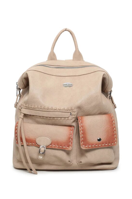Σακίδιο πλάτης από υψηλής ποιότητας τεχνόδερμα που  διαθέτει στην πίσω όψη βοηθητική θήκη με φερμουάρ. Εξωτερικά στην μπροστινή όψη διαθέτει βοηθητικές θήκες και στην πίσω όψη θήκη που κλείνει με φερμουάρ. Διαθέτει ρυθμιζόμενα λουράκια πλάτης!