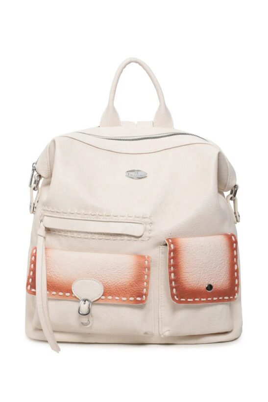 Σακίδιο πλάτης από υψηλής ποιότητας τεχνόδερμα που  διαθέτει στην πίσω όψη βοηθητική θήκη με φερμουάρ. Εξωτερικά στην μπροστινή όψη διαθέτει βοηθητικές θήκες και στην πίσω όψη θήκη που κλείνει με φερμουάρ. Διαθέτει ρυθμιζόμενα λουράκια πλάτης!