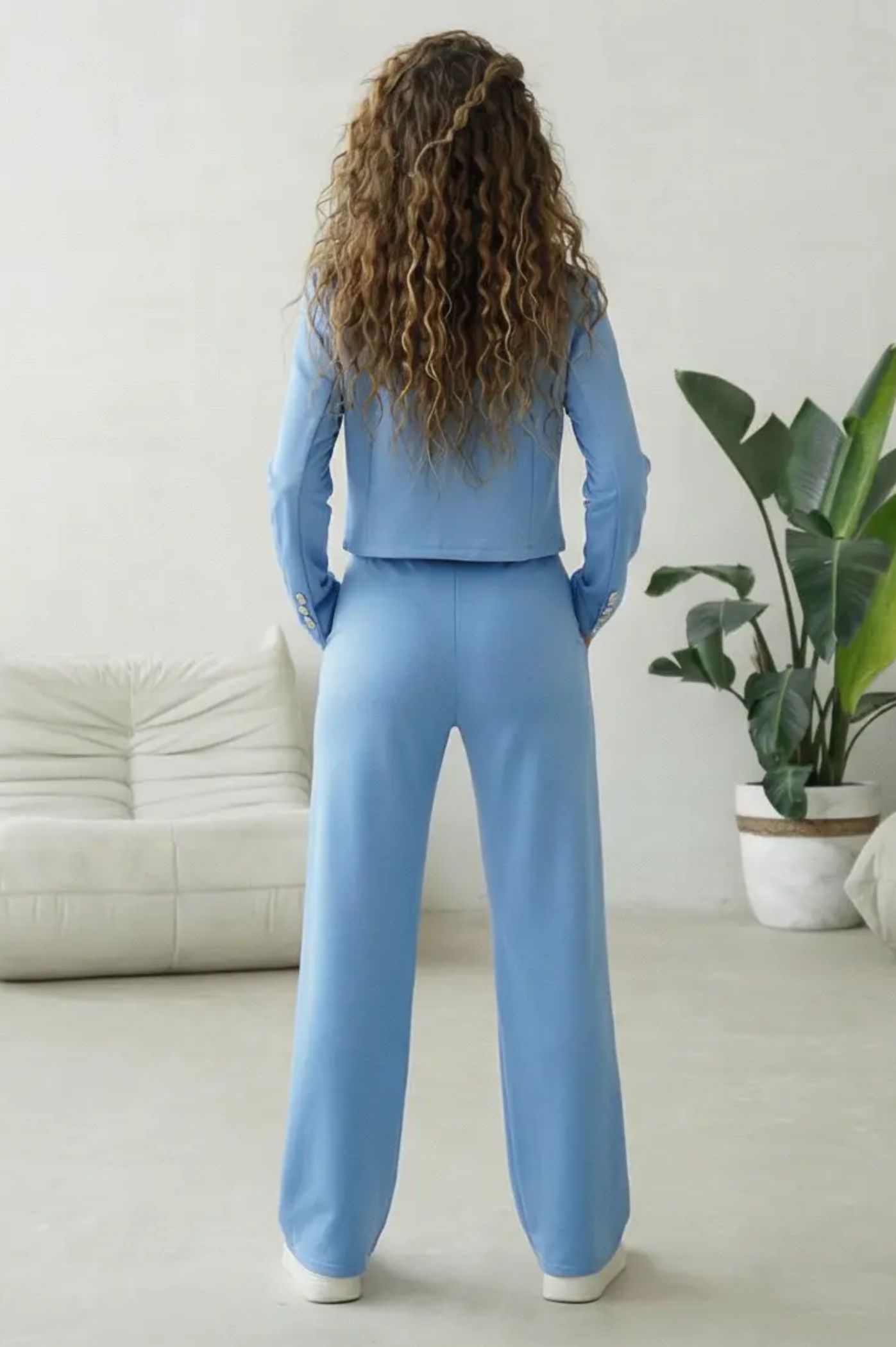 Συνδύασε την άνεση μιας φόρμας με το στυλ ενός κοστουμιού. Αυτό το σετ δύο τεμαχίων από premium, απαλό ύφασμα φόρμας που αγκαλιάζει το σώμα προσφέροντας απόλυτη ελευθερία κινήσεων. Διαθέτει κομψό σακάκι σε cropped γραμμή με κλασικό πέτο και κουμπιά που προσθέτουν μια tailored πινελιά στο look και παντελόνι με τσέπες και λάστιχο στη μέση. Ένα ευέλικτο σύνολο που αποπνέει αβίαστη φινέτσα, ιδανικό για να σας συνοδεύσει από τις πρωινές υποχρεώσεις μέχρι τις απογευματινές σας βόλτες με απαράμιλλο στυλ.