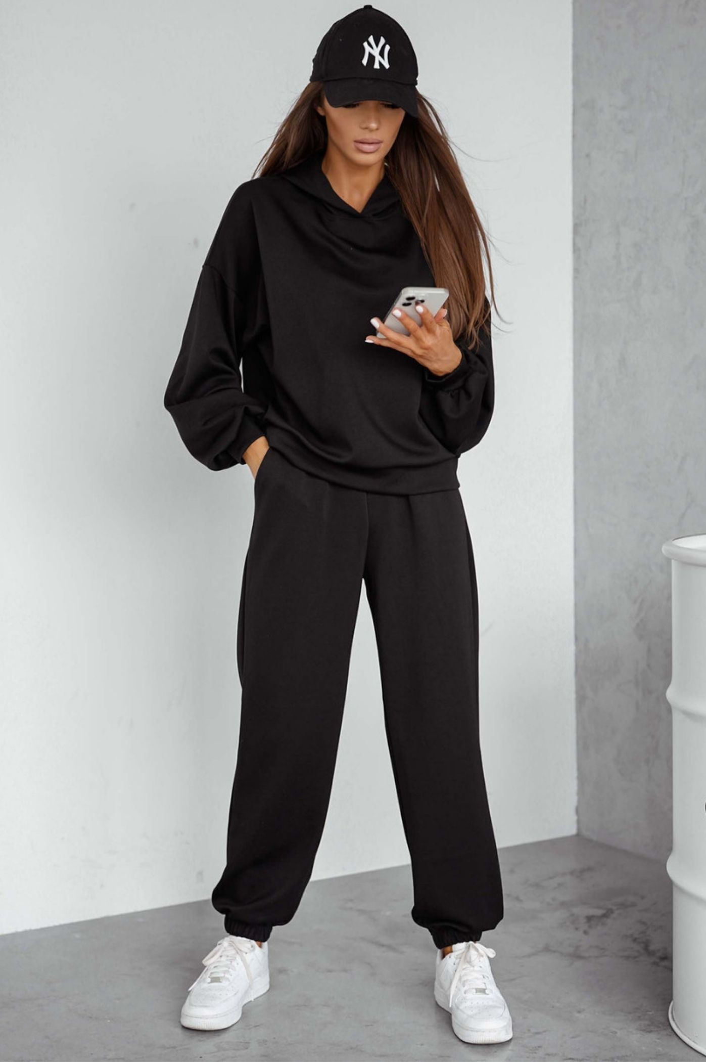 Αναδείξτε το στυλ σας με αυτό το γυναικείο σετ φόρμας που είναι η επιτομή του streetwear και του athleisure στυλ. Σχεδιασμένο για να προσφέρει μέγιστη άνεση χωρίς εκπτώσεις στο στυλ, είναι το τέλειο σύνολο για κάθε casual περίσταση. Η χαλαρή, oversized γραμμή του φούτερ προσφέρει μοντέρνο στυλ και απόλυτη ελευθερία κινήσεων, ενώ το παντελόνι διαθέτει λάστιχο στη μέση και πλαϊνές τσέπες για πρακτικότητα. Πρόκειται για το απόλυτο loungewear και work-from-home σύνολο, αλλά είναι εξίσου ιδανικό για βόλτες, ταξίδια και χαλαρές εξόδους.