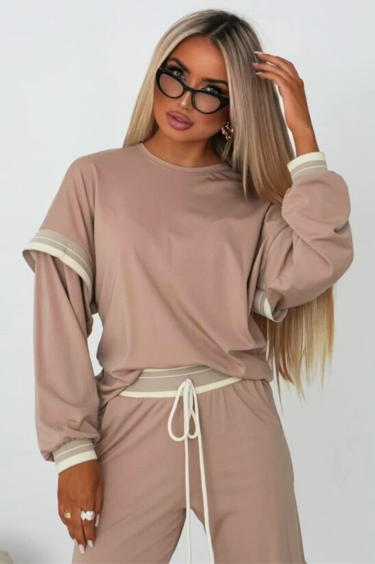 Αποκτήστε την απόλυτη ισορροπία άνεσης και στυλ με αυτό το γυναικείο σετ φόρμας φούτερ. Η μπλούζα διαθέτει στρογγυλή λαιμόκοψη και μακριά μανίκια με διακοσμητικές ρίγες στον ώμο, που δίνουν έναν διακριτικό sporty-chic αέρα. Το παντελόνι είναι ψηλόμεσο με λάστιχο στη μέση και ρυθμιζόμενο κορδόνι, ενώ η άνετη, ίσια γραμμή χαρίζει ελευθερία κινήσεων. Το ύφασμα φούτερ προσφέρει ζεστασιά και απαλή αίσθηση. Ιδανικό για χαλαρές εμφανίσεις, ταξίδια ή άνεση στο σπίτι, αυτό το σετ αποδεικνύει ότι η φόρμα μπορεί να είναι και fashionable.